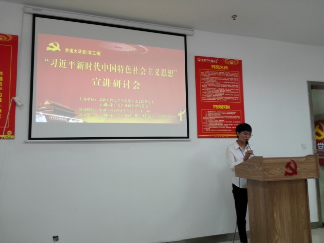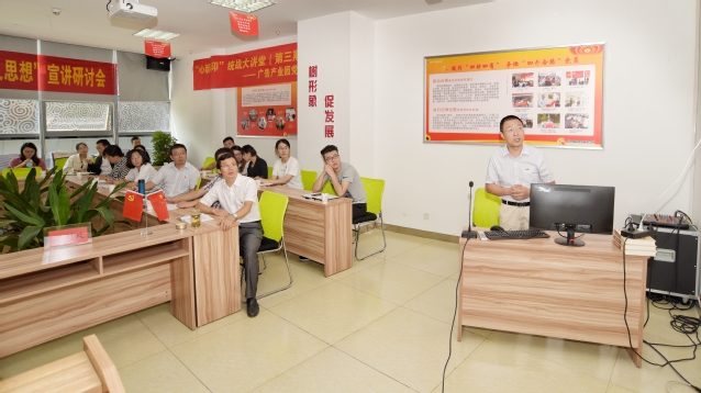 9月29日上午,马克思主义学院党总支与党建共建单位——芜湖国家广告产业园党总支在广告产业园二楼党群服务中心联合开展了党建大讲堂活动。此次党建活动以宣讲研讨“习近平新时代中国特色社会主义思想”为主题。马克思主义学院党总支书记王勇智、芜湖国家广告产业园党总支书记徐道忠、马克思主义学院教师党员、研究生党员和部分入党积极分子以及园区企业党员、入党积极分子和新的社会阶层人士代表参加了此次宣讲研讨会。活动由芜湖国家广告产业园党总支副书记桂丽娟主持。