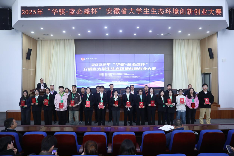 作为论坛的延伸与实践环节,“华骐-蓝必盛杯”安徽省大学生生态环境创新创业大赛决赛同步举行,安徽工程大学副校长王成军教授出席决赛开幕式。来自全省24所高校的111支参赛团队分本科组与研究生组同台竞技,通过PPT汇报、实物展示、视频演示等形式,全面呈现了在环境功能材料、污染治理技术、碳资源循环利用、智慧环保系统等方向的创新成果。大赛共评选出特等奖23项、一等奖37项、二等奖51项、三等奖138项,充分展现了安徽省环境学子扎实的专业功底与昂扬的青春风采。