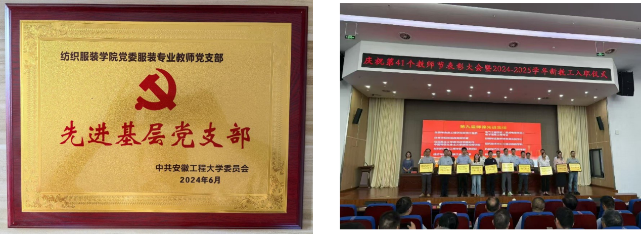 突出“双带头人”工作室的特点和优势,把教师党员和全系师生凝聚到学科发展和专业建设的高度上来,通过开展“党建引领工程专业认证”、“党建引领毕业生就业工作”等系列党建促发展活动,实现党建和教学科研工作双提升,深入开展党史学习教育、学习贯彻习近平新时代中国特色社会主义思想主题教育、学习习近平总书记“七一”重要讲话、党纪学习教育等专题研讨活动,“对标‘四有’标准,争做‘六有’好教师”,开展个人批评与党员互评,开展谈心谈话活动,主动关心关爱教师。工作室全体成员凝心聚力,发挥工作室的战斗堡垒作用和党员的先锋模范作用,促进教学、科研和人才培养工作,弘扬正气,营造风清气正的工作作风和干事创业的良好风气,形成了“美美与共,各美其美,和谐发展”的工作新气象。服装设计与工程专业首次申请工程专业教育认证,即获受理,完成了自评报告的提交工作,并顺利进入了下一阶段的评审环节;服装与服饰设计专业在省级一流本科专业建设点阶段性检查中获评“良好”等级;表演(服装)专业圆满完成了安徽省2024、2025年普通高校招生艺术类专业统考表(导)演类(服装表演方向)考试工作。工作室所在服装系教师党支部、服装系先后荣获安徽工程大学“文明系部”、“先进基层党支部”、第九届“师德先进集体”等荣誉称号。