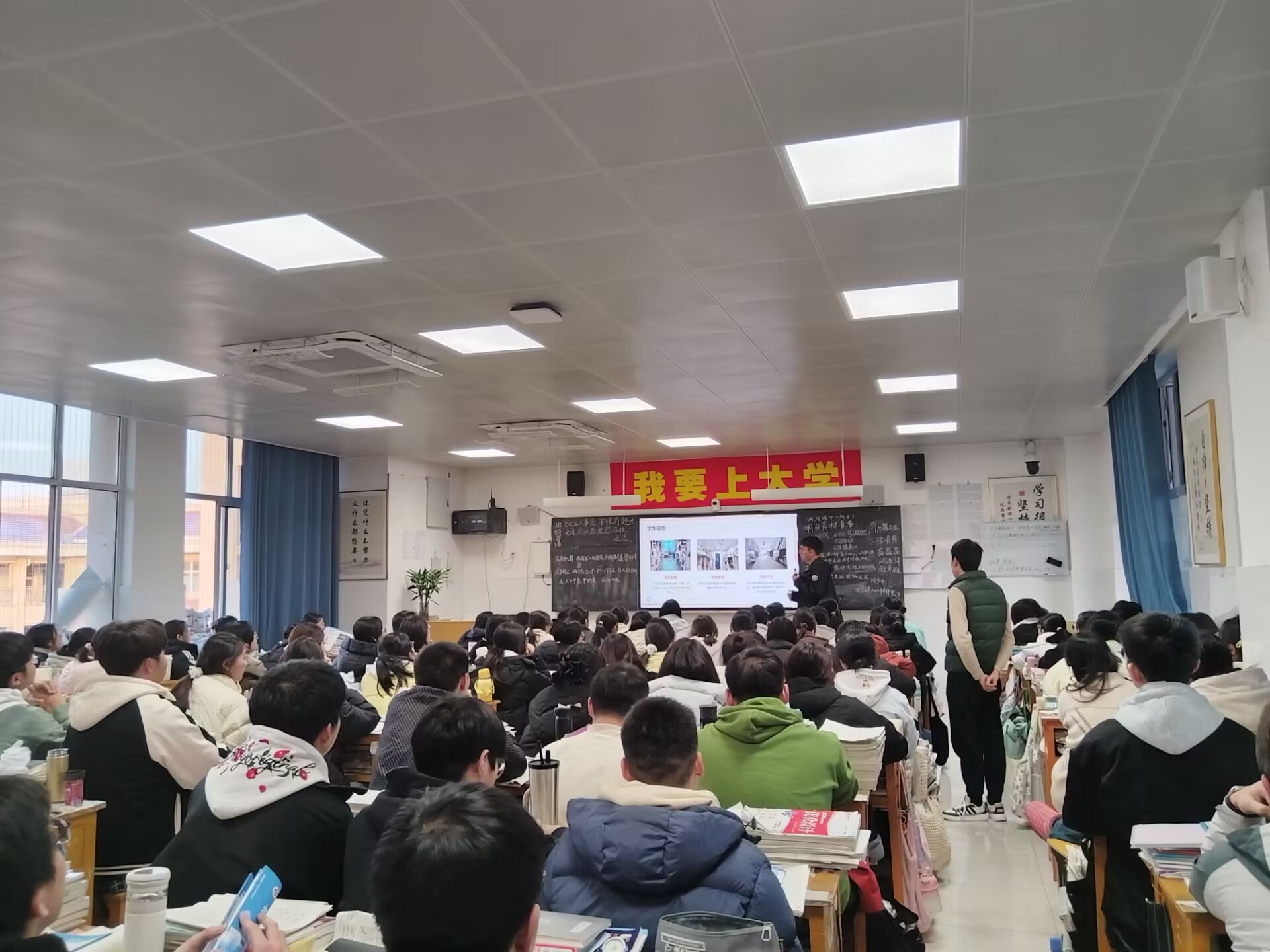 1月14日,团队率先抵达毛坦厂中学开启宣讲。成员们结合自身经历,用亲切的语言解读学校办学定位、学科特色,重点介绍工科为主、多学科协调发展的优势,详解纺织服装学院及其他优势专业情况,同时分享高考备考和大学生活经验,为学弟学妹答疑解惑、鼓劲加油。
