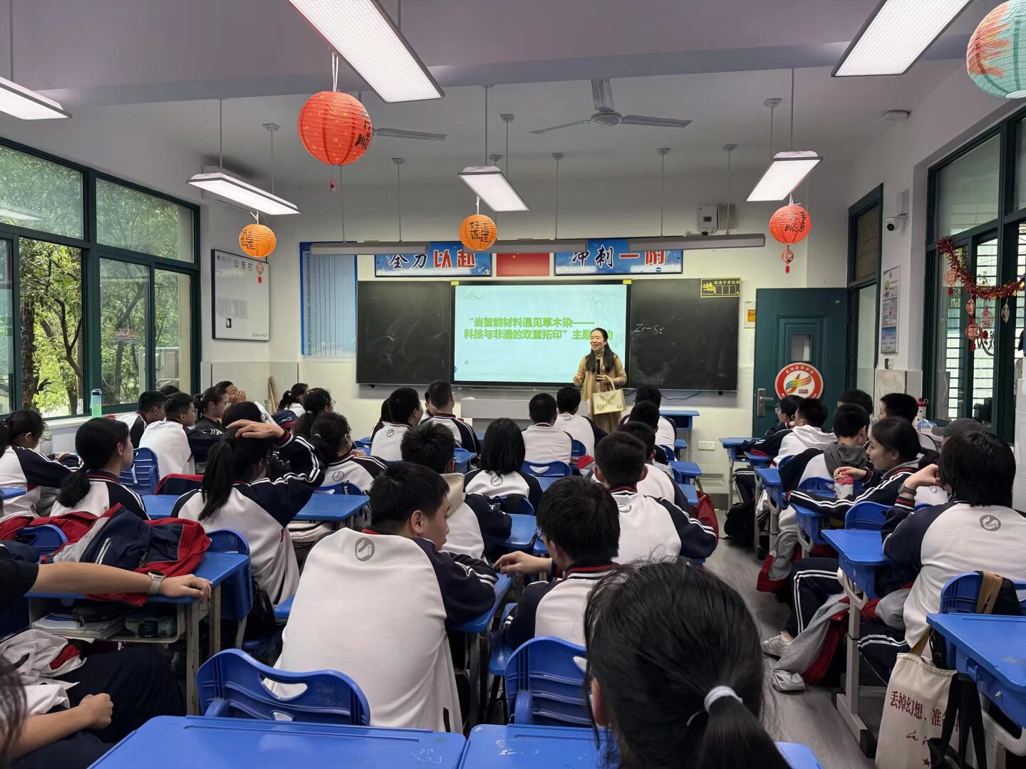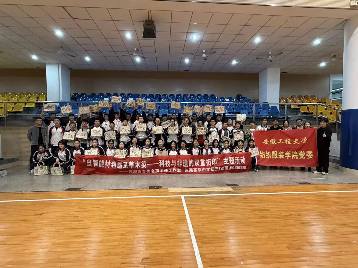 4月9日,安徽工程大学纺织服装学院“行走的课程思政”公益团队走进荟萃中学908班,为同学们带来了一场别开生面的科普活动。活动围绕“当智能材料遇见草木染——科技与非遗的双重拓印”主题,设置了智能纤维科普讲座、纳米气凝胶科普实验、敲拓染手作三个环节,让中学生们近距离感受纺织科技与传统文化的魅力。此次活动也是纺织服装学院党委“我为师生办实事”实践活动项目——“非遗传承·思政铸魂”系列实践活动之一。