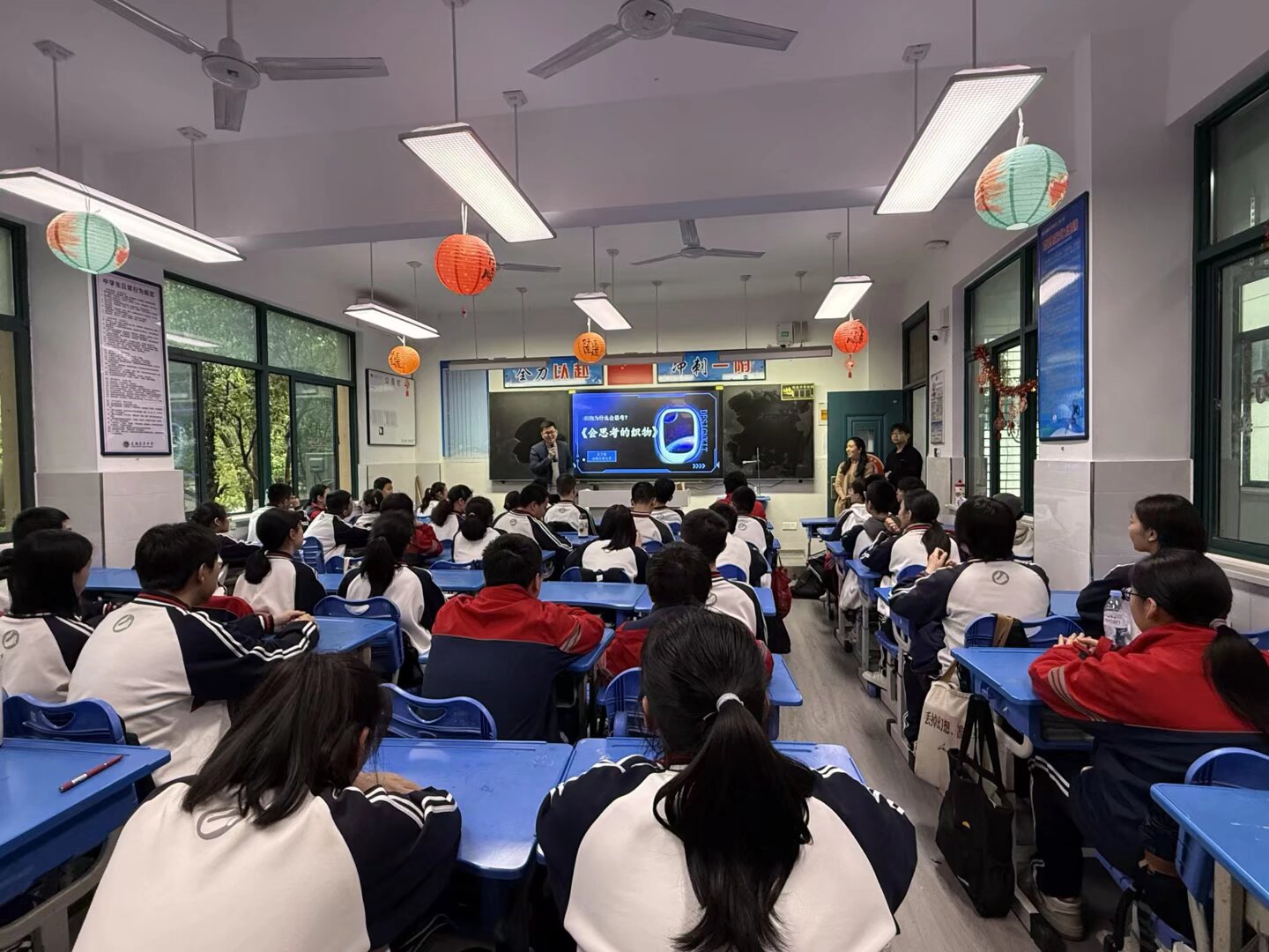 活动伊始,武丁胜老师以《会思考的织物》为主题,向同学们介绍了从传统衣服到智能衣服的变革。他展示了智能纤维如何像拥有“大脑”一样,能够感知环境变化、发电、显示信息、监测健康,甚至与人对话。通过介绍复旦大学研发的纤维电池、纤维芯片,以及浙江大学仿北极熊毛结构的超保温纤维等前沿科技,同学们深刻感受到智能织物在未来生活中的巨大潜力。