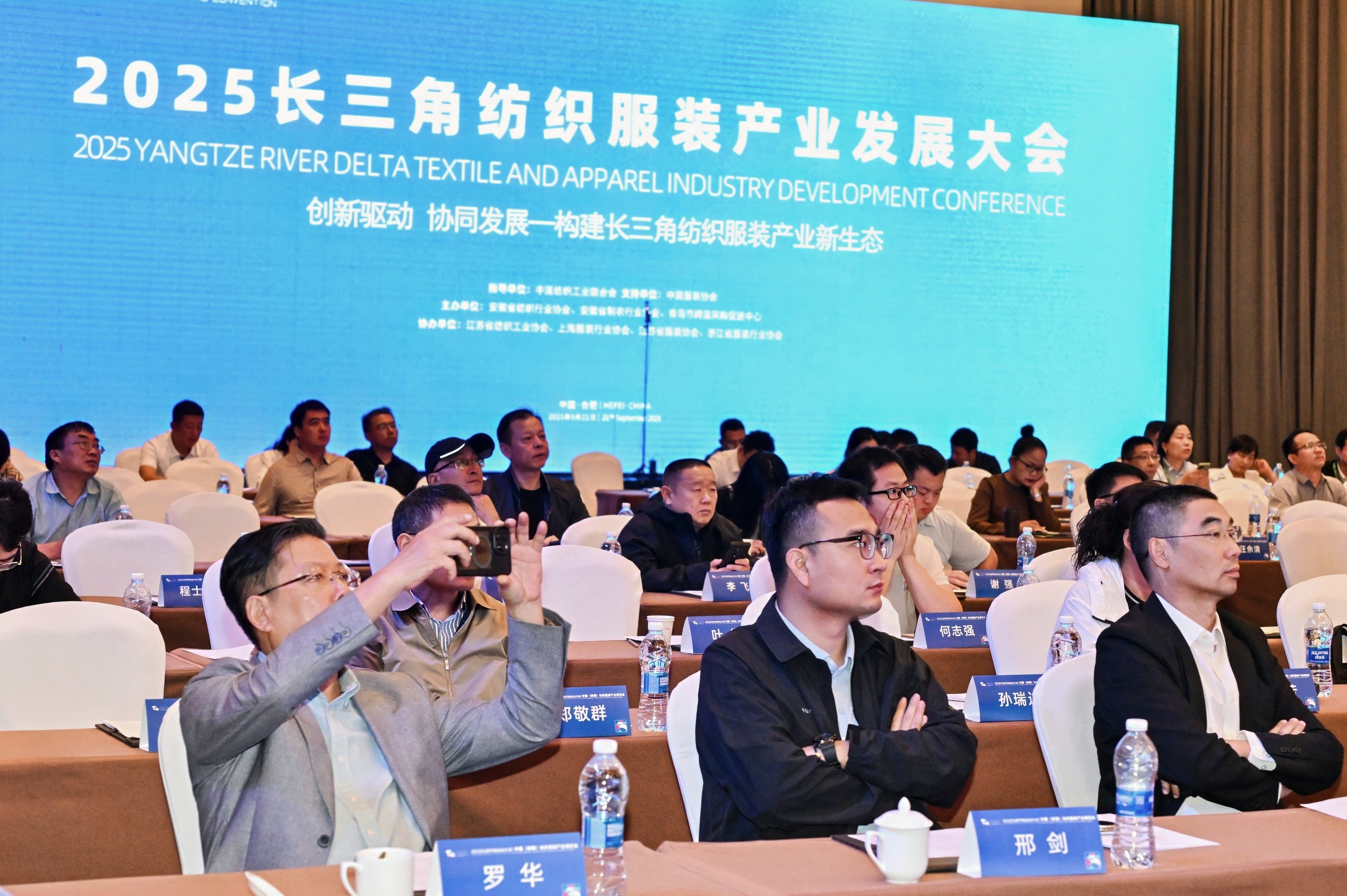 在长三角纺织服装产业发展大会主题对话活动中,学院副院长(主持工作)邢剑受邀与政府、行业代表深入探讨产业发展新趋势及技术创新路径,并参与了安徽省纺织服装产业集群合作共建启动仪式。