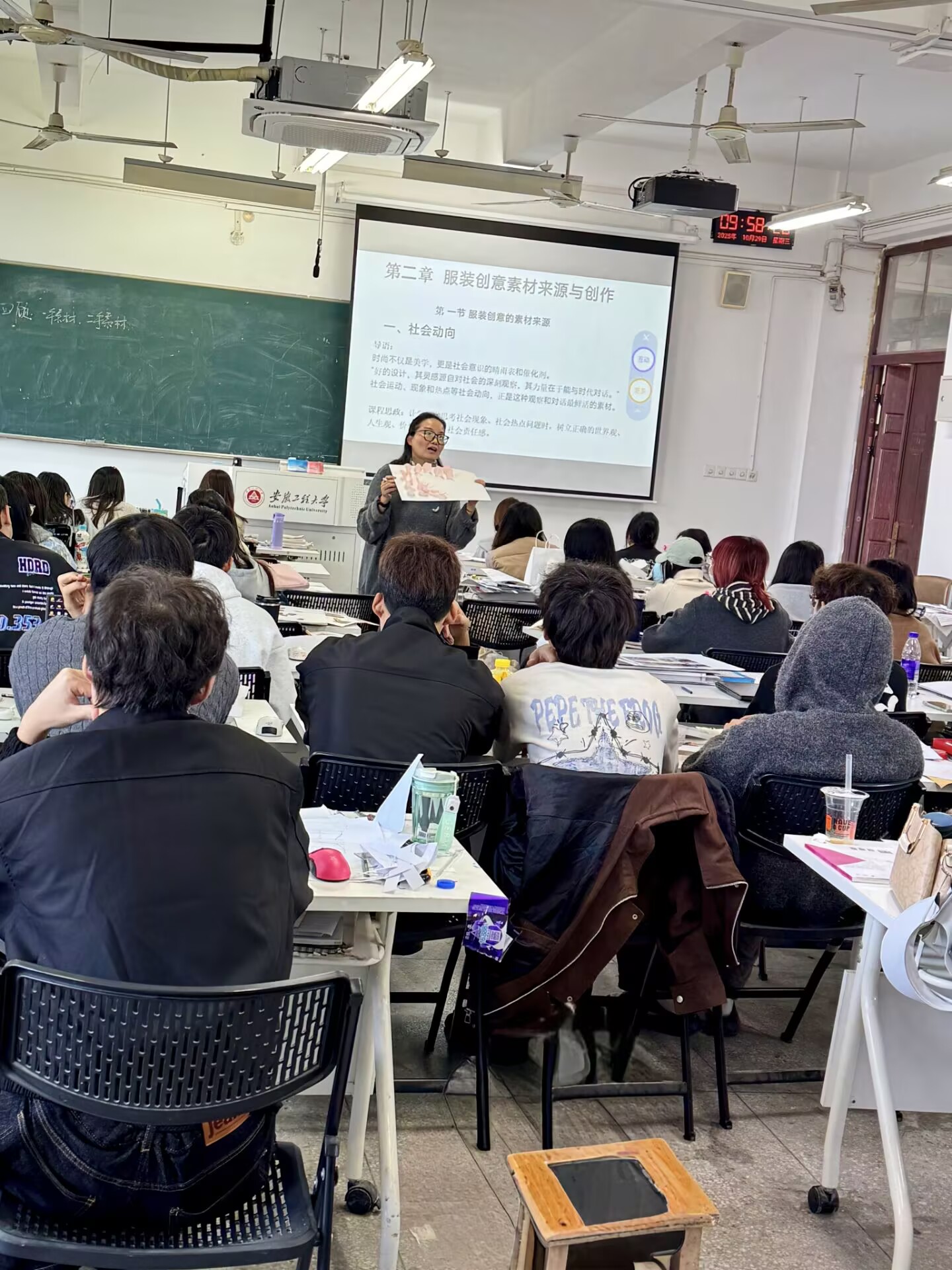 课程中,李敏老师通过丰富案例,生动阐释了服装不仅是美学的表达,更是社会意识与文化的载体。学生们在课堂互动与调研中,逐步建立起“设计源于生活,高于生活”的创作理念,并在小作业环节中尝试从社会热点或民族文化中提炼设计概念,展现出强烈的社会责任感和文化自信。本次课程不仅强化了学生的专业能力,更注重培养其作为新时代设计师应具备的思想深度与社会担当,真正实现了“课程思政”与专业教学的有机融合。现场观摩老师就《安徽工程大学本科教学观摩评价表》对本次课的教学内容、教学设计、教学组织和教学方法等提出了自己的收获与建议。