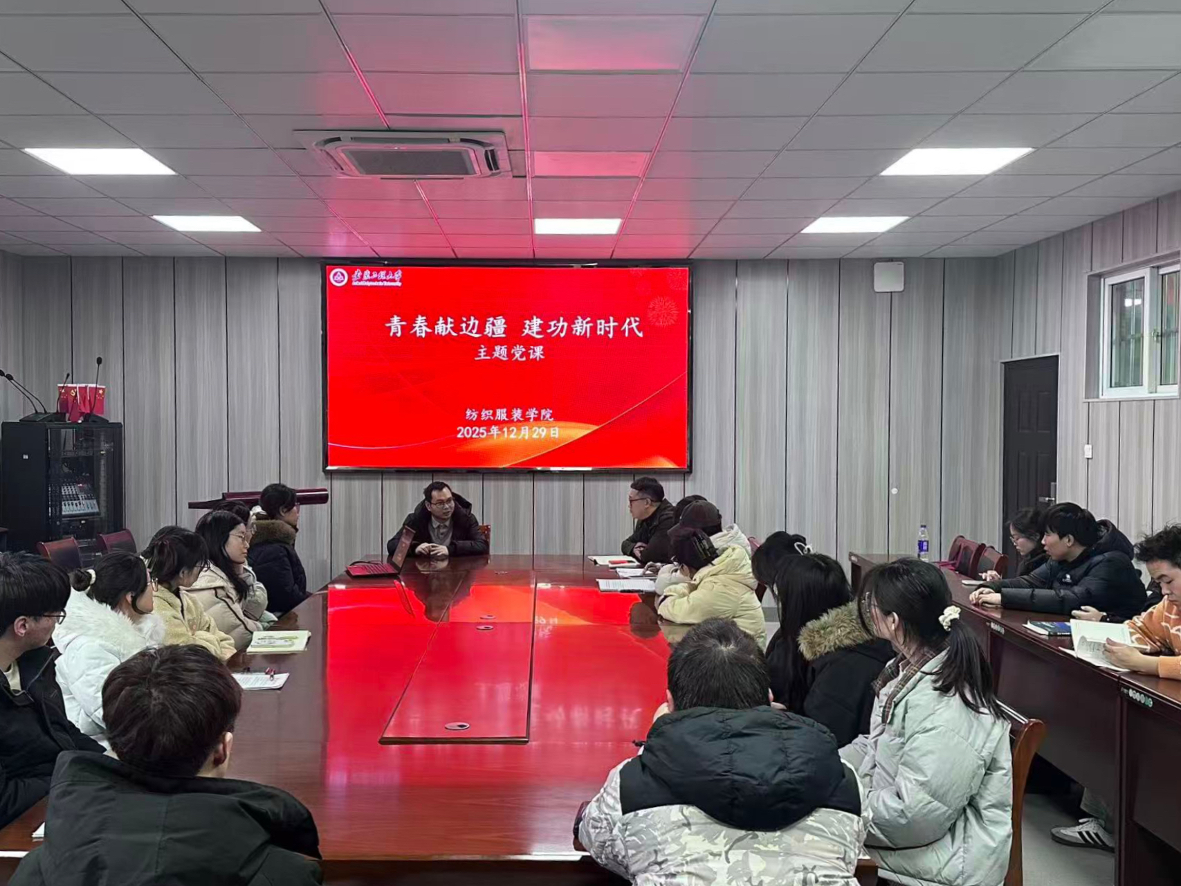 12月29日,纺织服装学院在学院会议室举行“青春献边疆 建功新时代”主题党课。会议特邀学院2018届纺织工程专业优秀毕业生、扎根西藏奉献边疆的校友李愉回校分享成长经历。学院团委书记陈倩、教师代表及各学生党支部党员参加了本次活动,活动由学院服装专业学生党支部书记石健主持。