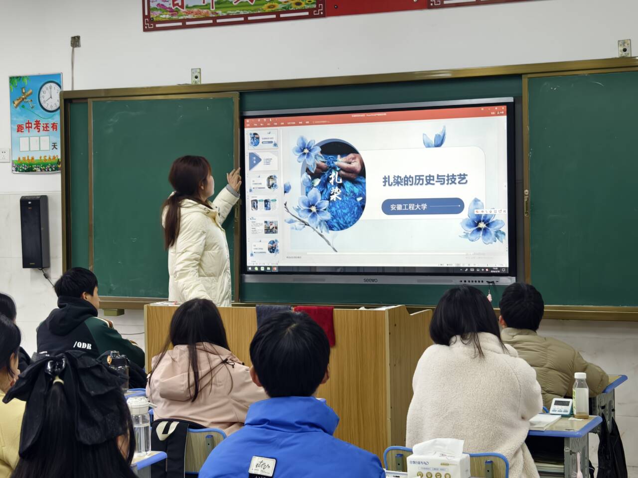 为深入推进乡村文化振兴,搭建高校与乡村的育人桥梁,3月18日,纺织服装学院学生走进芜湖市南陵县丫山初级中学校园,开展“非遗扎染进校园”主题志愿实践活动。团队通过非遗扎染技艺宣讲与展示,为乡村孩子带去一场兼具文化温度与青春活力的实践盛宴。