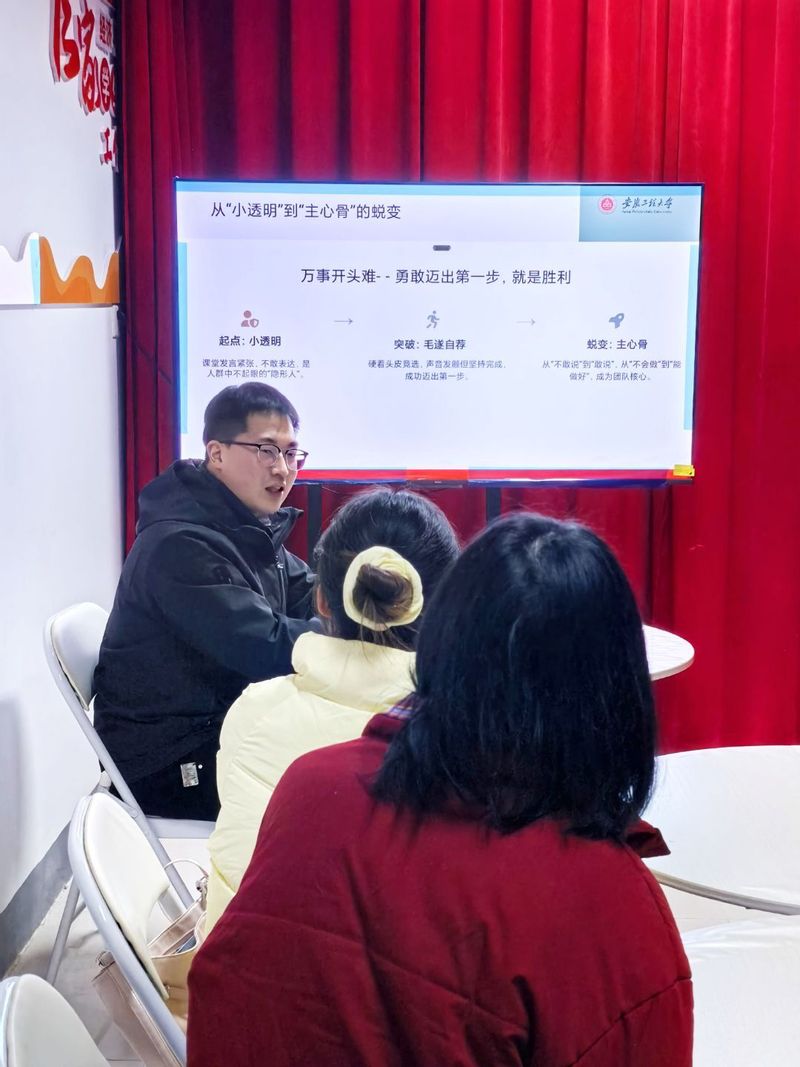 分享会上,王然从学生工作的方法与方向与在场学生干部共话成长与工作技巧。他结合自身从校园实践和工作经历两个角度展开分享。首先,他将自己的心得体会总结为“三个对”,即对外做事、对人链接、对人认识。他提出在大学生活中要“追风赶月莫停留”,要摒弃“自闭、自轻、自隐”的心态。同时,他结合竞选学长导员、学生会竞选留任的实例提出要敢于试错,要对自己所做的每一件事都问心无愧,树立信心,在活动中锤炼自身的能力。