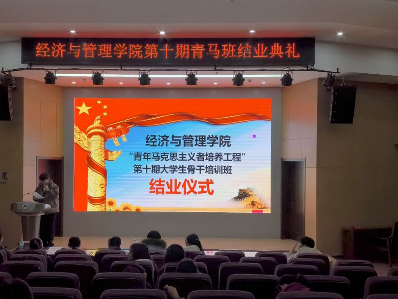 为凝聚青年力量、锤炼青年品格,12月24日下午,经济与管理学院第十期青年马克思主义者培养工程大学生骨干培训班结业仪式在C座七楼报告厅举行。青马班全体青马班成员共同参加。