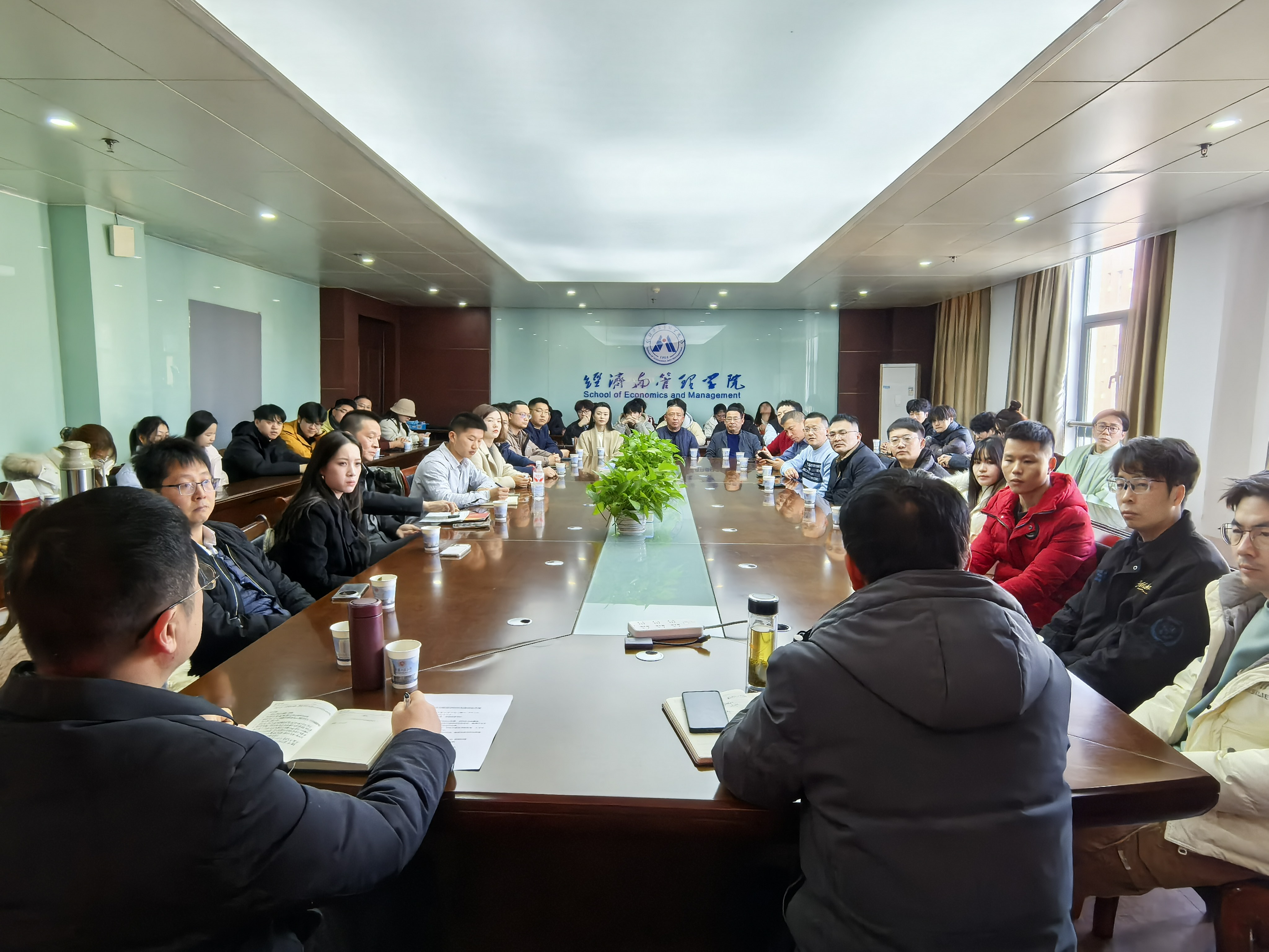 冬日暖阳,情满校园。12月27日下午,经济与管理学院校庆90周年校友座谈会在C座818会议室举行。学院党政领导、教师代表、校友代表、学生代表,齐聚一堂,共叙往昔情谊,共话学院发展。座谈会由学院党委书记水心宝主持。