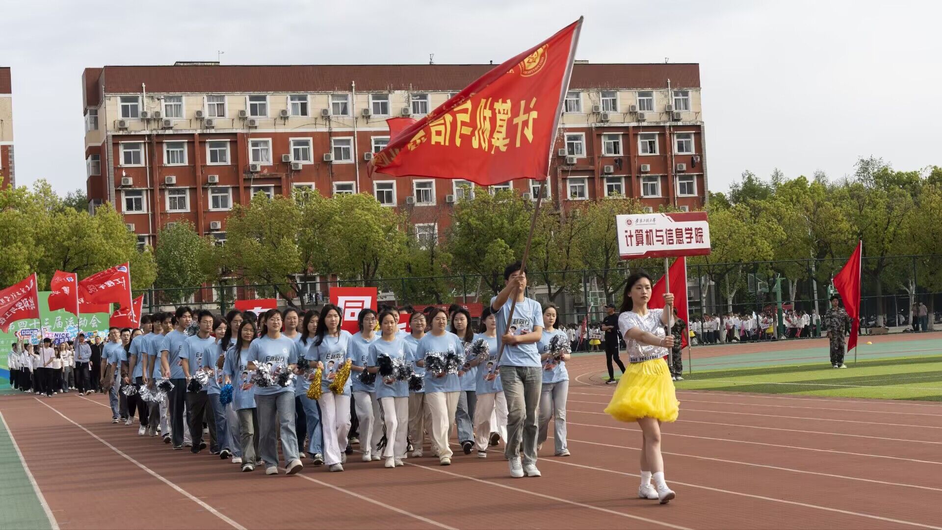 校第43届运动会于4月16日至18日在操场顺利举办。计算机与信息学院师生携手并肩,积极参与,奋力拼搏,共创佳绩,最终斩获学生乙组团体总分第一、学生甲组团体总分第四及教工组团体总分第五的优异成绩,以昂扬风貌献礼学校九十华诞。