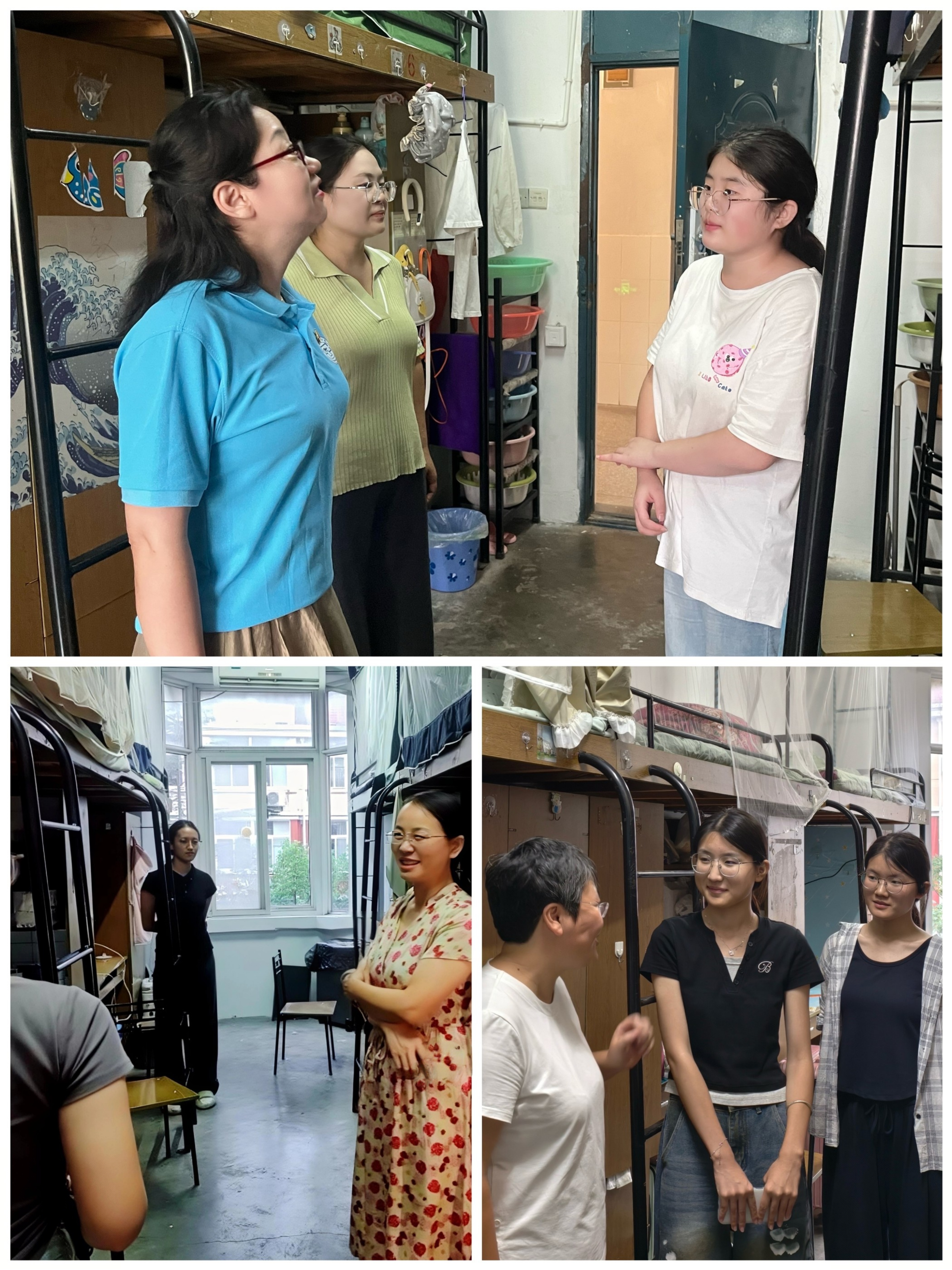 9月6日,计算机与信息学院党政领导带领各系部专业教师代表及全体新生辅导员深入新生住宿区域,对111间新生宿舍逐一走访,以面对面的亲切互动传递学院对新生的关怀。