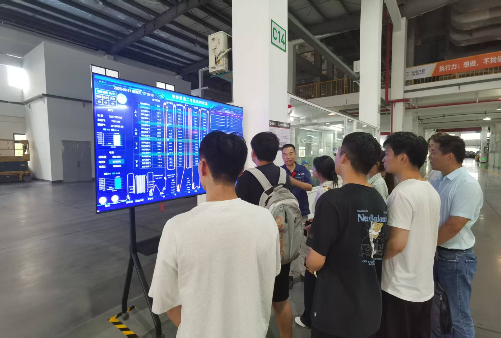 刘文学还与高研院华烨项目新入学的三名研究生进行了交流,对学生暑期开展的工作充分肯定,并就联合培养的具体方案进行了深入讨论,包括课程设置、实践安排和双导师制实施等细节。会中,章平还分享了学院研究生招生政策,鼓励企业骨干为自身职业发展赋能。会后,刘文学带领项目团队深入现场,介绍了企业现有的信息化系统和项目团队前期的工作成果。