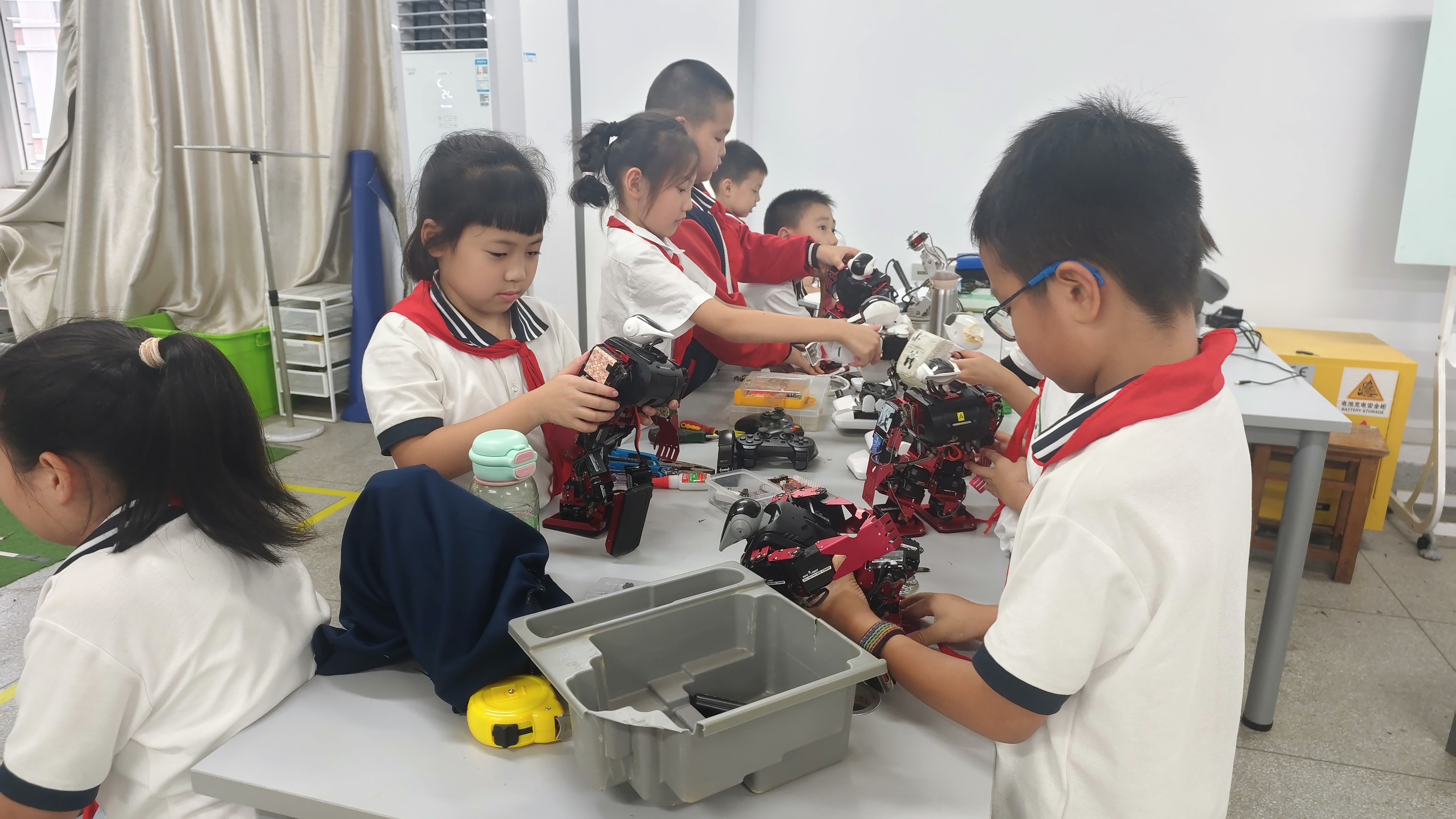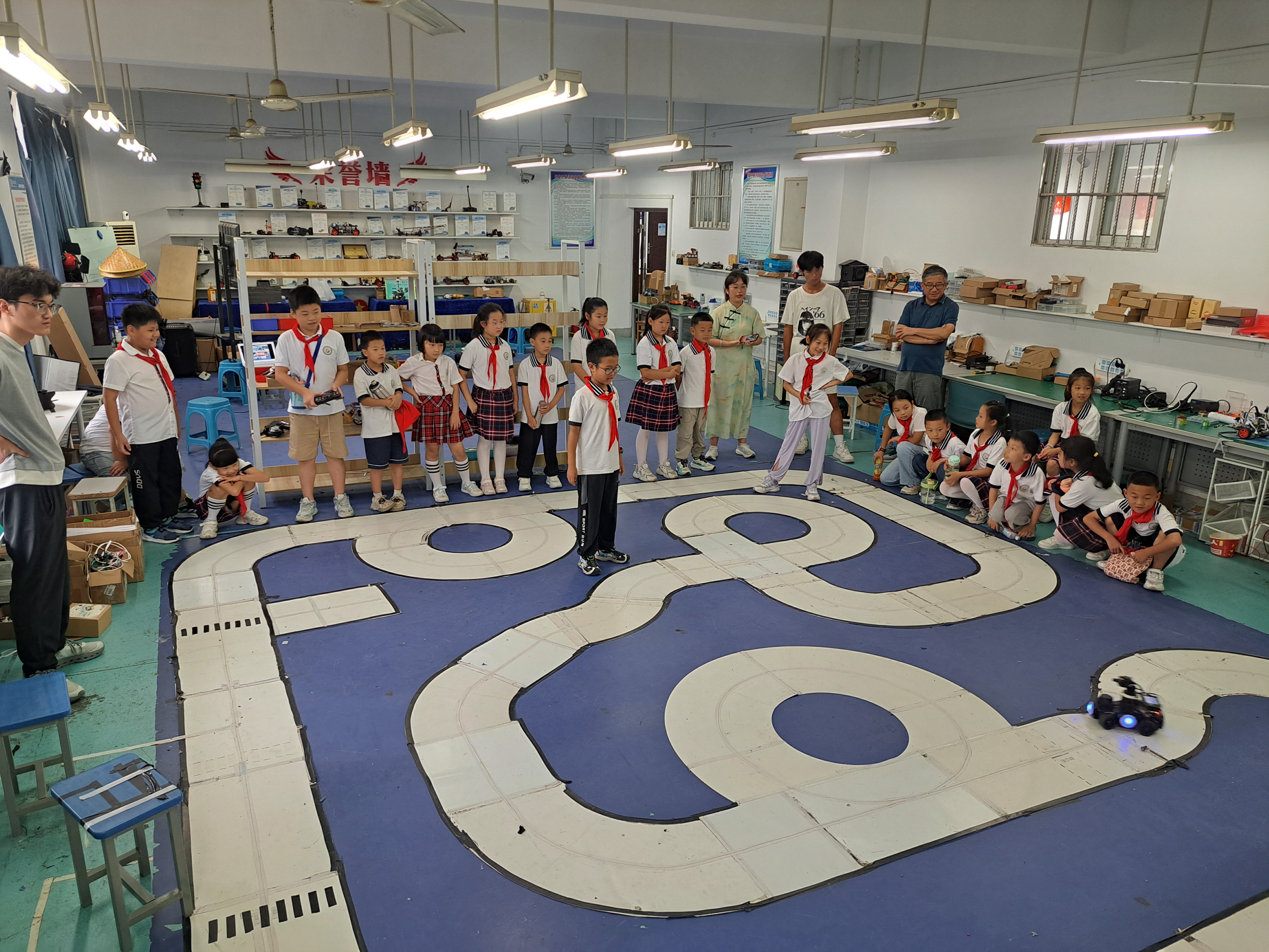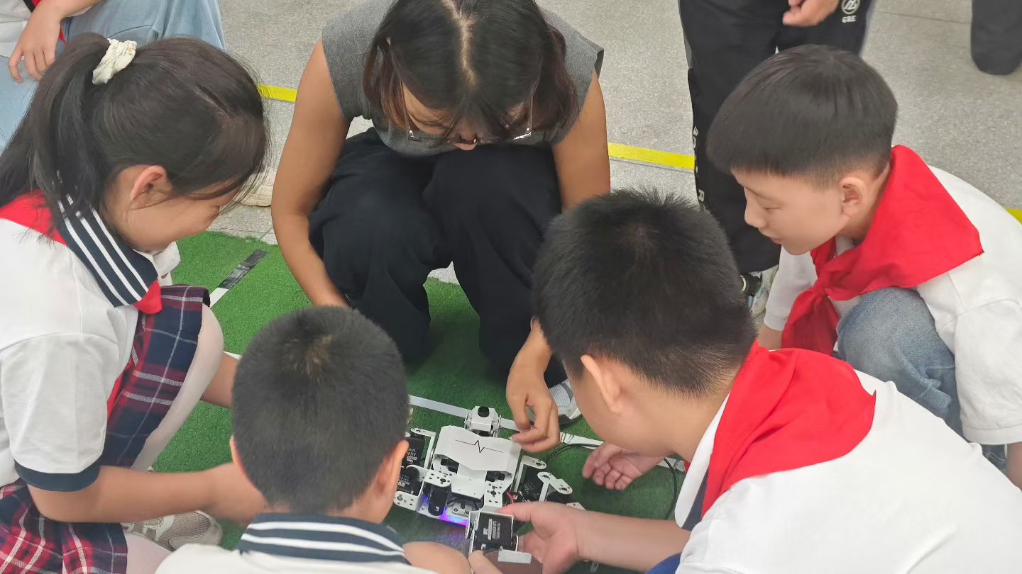 在互动环节,小学生们积极参与,提出了许多充满想象力的问题,大学生讲解员们一一耐心解答,创新创业教育中心的指导老师们也适时参与互动,用更贴近孩子认知的方式辅助讲解,现场气氛热烈。不少小学生还亲自上手体验,操作智能车等设备,在实践中感受科技带来的乐趣。