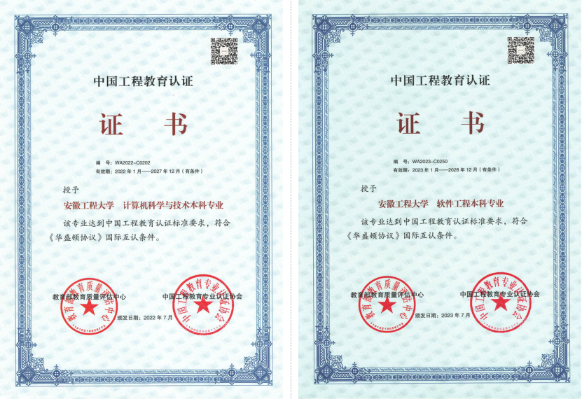 学院紧密对接国家和区域经济社会发展需求,持续优化专业结构,强化专业内涵建设。四个本科专业均面向安徽省战略性新兴产业布局,计算机科学与技术、软件工程专业入选国家级一流本科专业建设点,物联网工程、数据科学与大数据技术专业入选省级一流本科专业建设点,四个专业全部获批省级“六卓越、一拔尖”2.0计划。计算机科学与技术、软件工程为省级特色专业,数据科学与大数据技术、物联网工程为安徽省综合改革试点专业,数据科学与大数据技术为省级服务安徽省新兴产业专业。学院持续推进工程教育认证,计算机科学与技术、软件工程专业通过教育部工程教育专业认证,专业建设水平与人才培养质量持续提升。