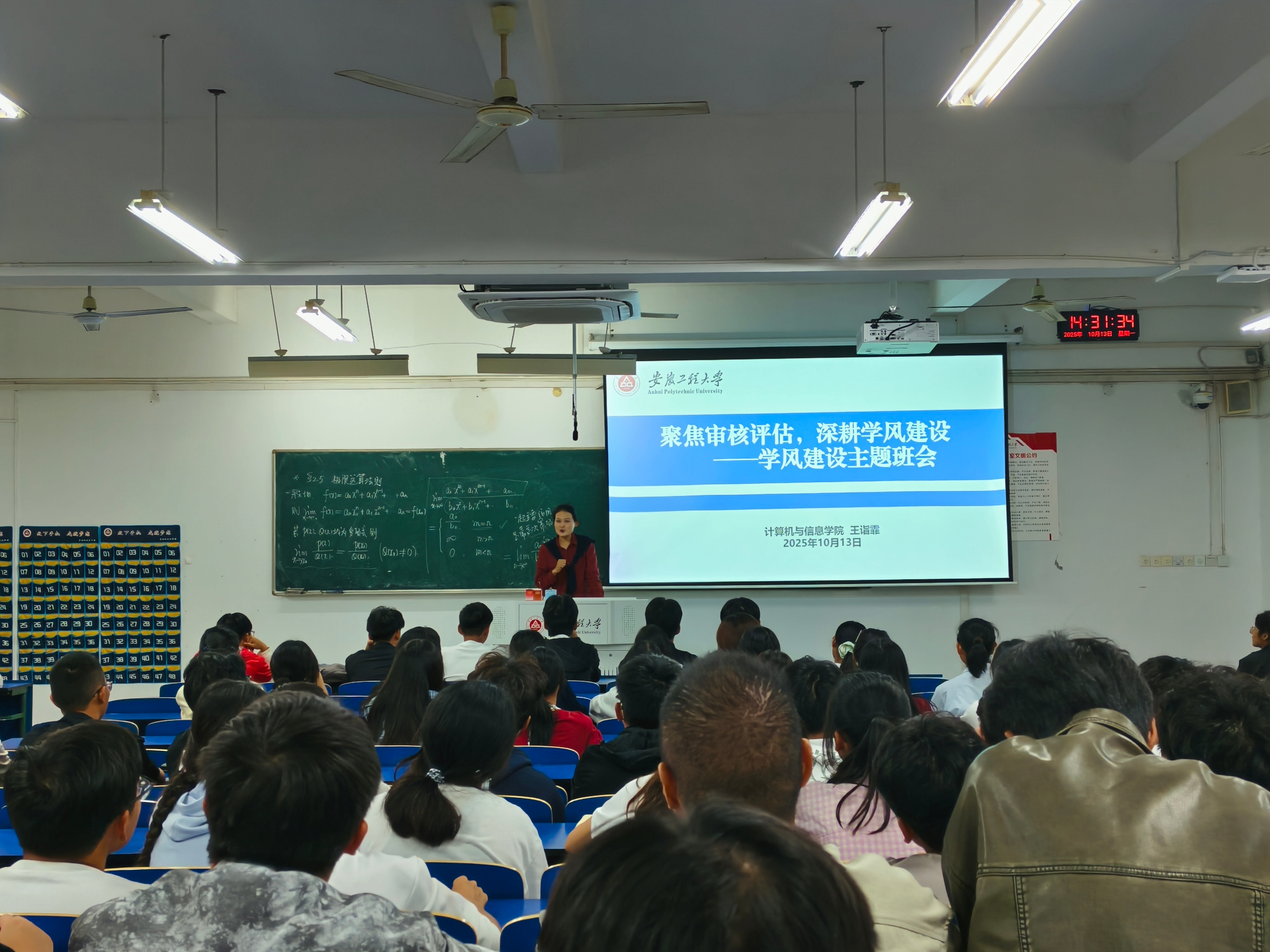深化思想引领,打好学风建设“基础框架”。计算机与信息学院学工团队积极响应学校相关要求,第一时间落实《关于做好十月份学风建设主题班会(主题团日)教育活动的通知》精神,针对全院59个本科生班级全覆盖召开学风建设主题班会,带领学生学习《安徽工程大学本科审核评估应知应会(学生版)》和《关于加强教风学风建设提升课堂教学质量的提示》,引导学生树立正确的学习观。各班级辅导员详细解读文件内容,强调课堂纪律、学习规范和行为准则,让学生深刻理解优良学风对个人成长和学校发展的重要意义。