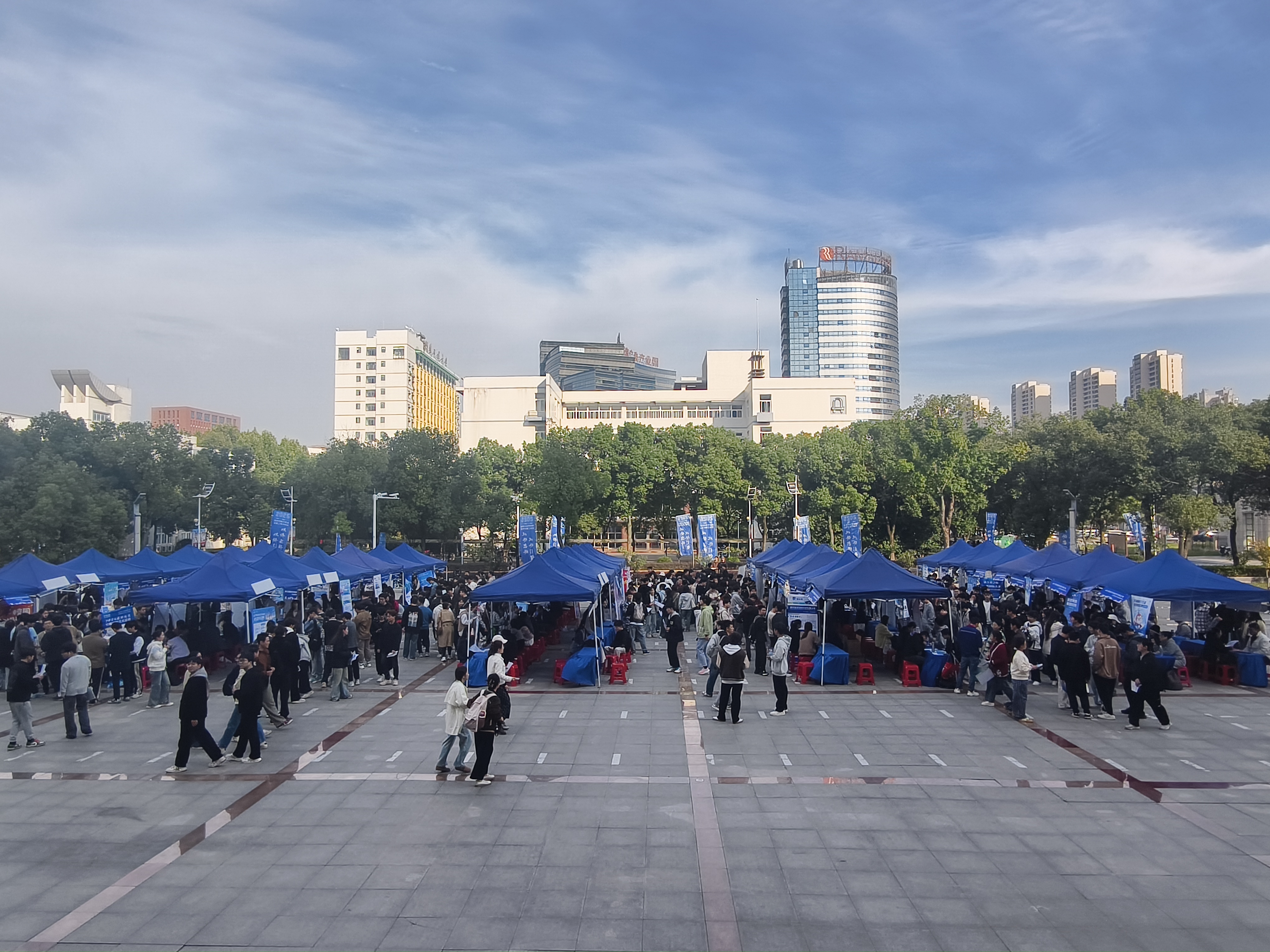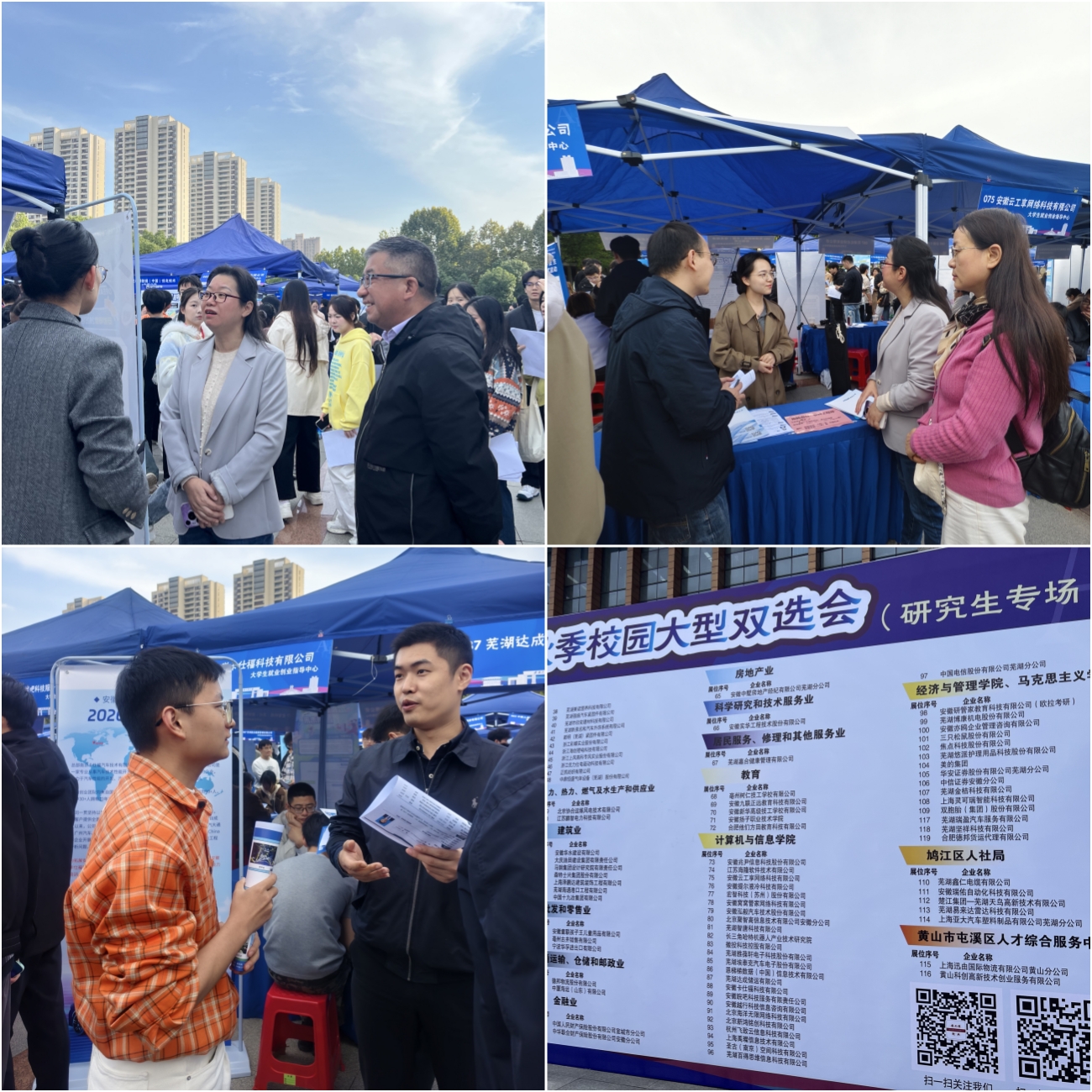 10月29日下午,计算机与信息学院在校本部图书馆广场举办2026届毕业生秋季双选会。学院党政领导班子、毕业班辅导员深入招聘会现场与用人单位和毕业生进行沟通交流。