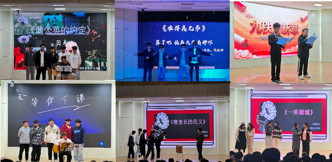 本次大赛经过班级初选,共选拔出13个节目进入决赛,来自四个专业的30余名新生以寝室为单位参与,涵盖歌曲、话剧、微短剧、朗诵等多种表演形式。参赛学生以青春创意献礼校庆,充分展现了新时代大学生积极向上的精神风貌。