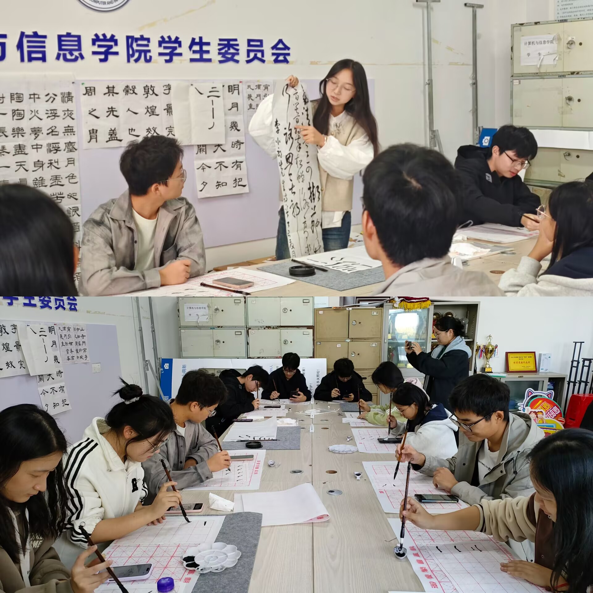 为弘扬中华优秀传统文化,丰富校园文化生活,11月12日下午,计算机与信息学院学生会功能型团支部开展了一场别开生面的“朋辈书法课堂”主题团日活动,学生会活动室内墨香袅袅,学院文艺部部长罗文俊带领同学们亲身感受中华书法的独特魅力。