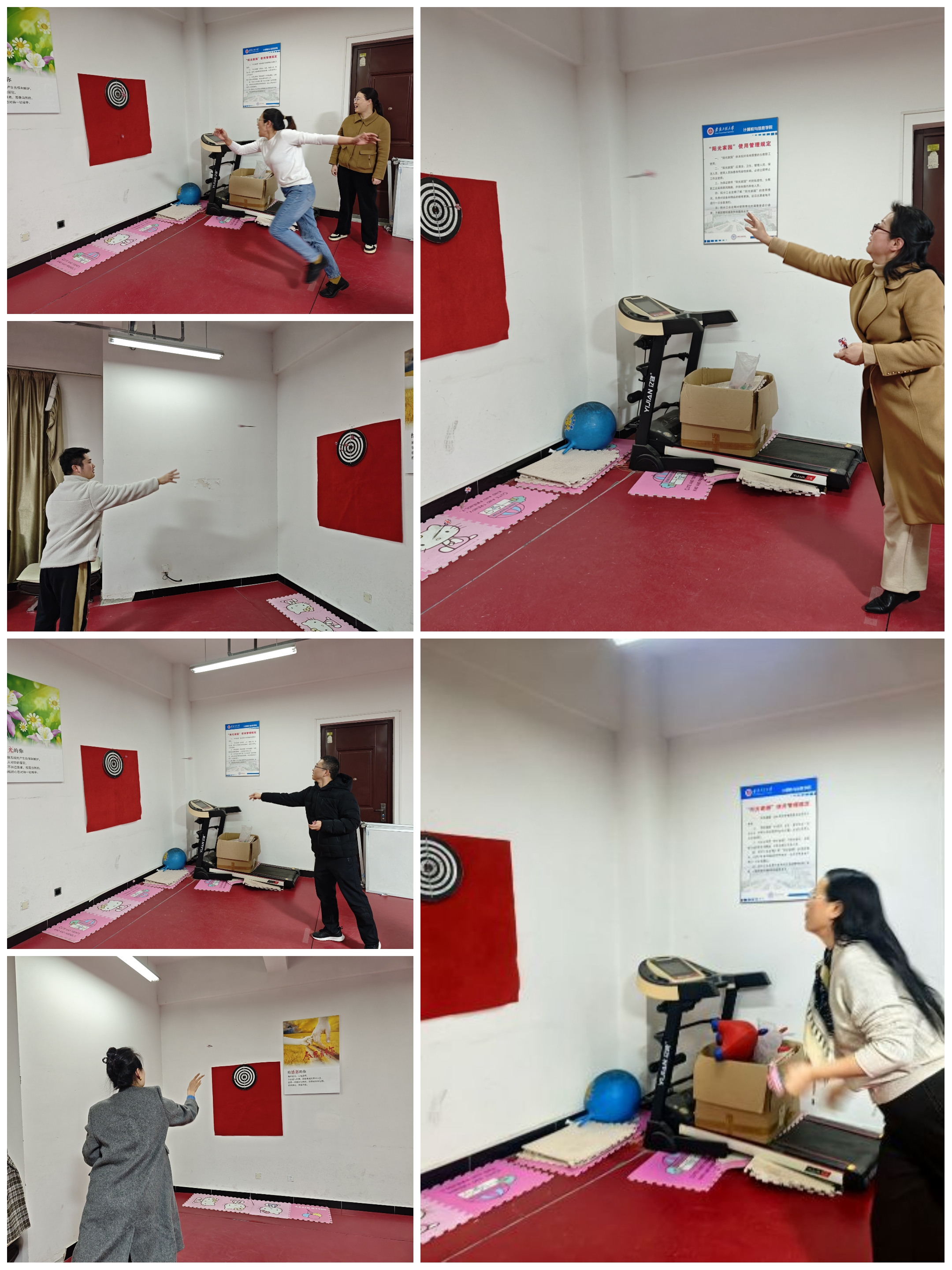 比赛现场气氛热烈而有序,平日里深耕讲台、潜心科研的教职工们化身活力满满的“飞镖达人”。选手们手持飞镖,凝神聚气,瞄准靶心果断投掷,一系列动作流畅娴熟。飞镖破空而出,或精准命中十环,或遗憾偏差,现场不时响起阵阵掌声与欢呼声。大家在比赛中相互切磋技艺,交流投掷心得,脸上洋溢着轻松愉悦的笑容。无论是经验丰富的“老将”,还是初次参赛的“新手”,都全力以赴投入比赛,展现出积极向上、奋勇争先的良好精神风貌。
