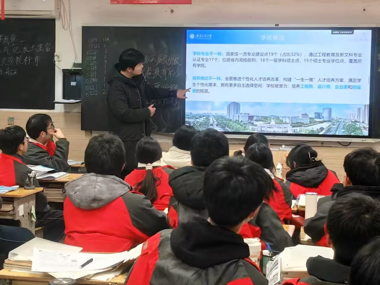 宣讲现场,团队成员与高三学子面对面交流,介绍学校学院的办学底蕴,结合自身学习体验分享专业概况与行业前景,帮助学子建立初步认知。同时,重点解读学校就业优势、校园文化及高三冲刺备考方法,以真实经历增强宣讲的针对性与说服力。互动环节,学子们踊跃提问,围绕专业选择、高考录取分数线、大学学习规划等问题咨询,团队成员耐心回应、给出合理建议,现场氛围热烈融洽。