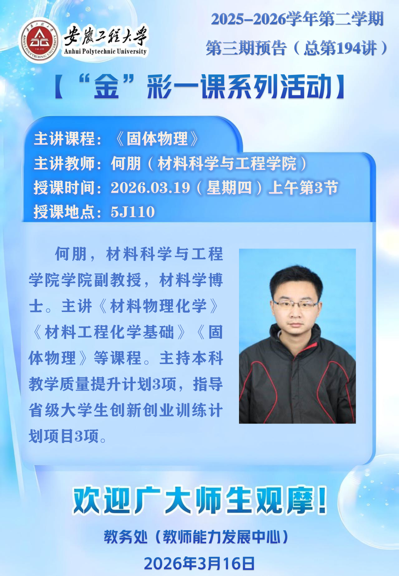 2025-2026学年第二学期【“金”彩一课系列活动】第三期预告(总第194讲)