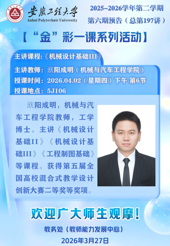 2025-2026学年第二学期【“金”彩一课系列活动】第六期预告(总第197讲)