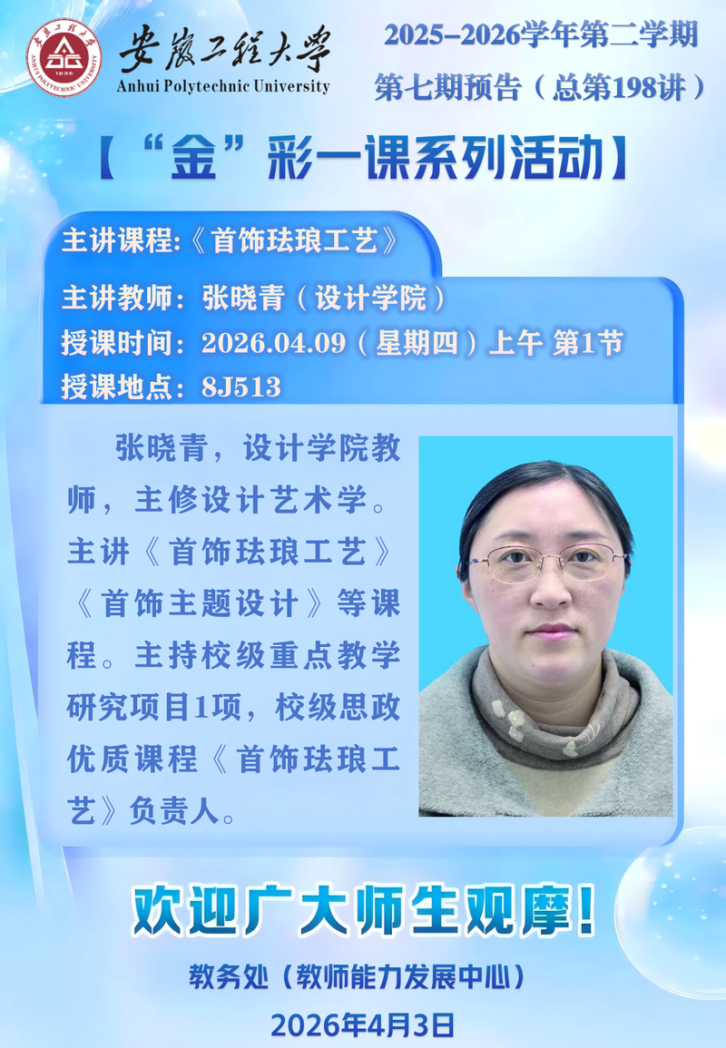 2025-2026学年第二学期【“金”彩一课系列活动】第七期预告(总第198讲)