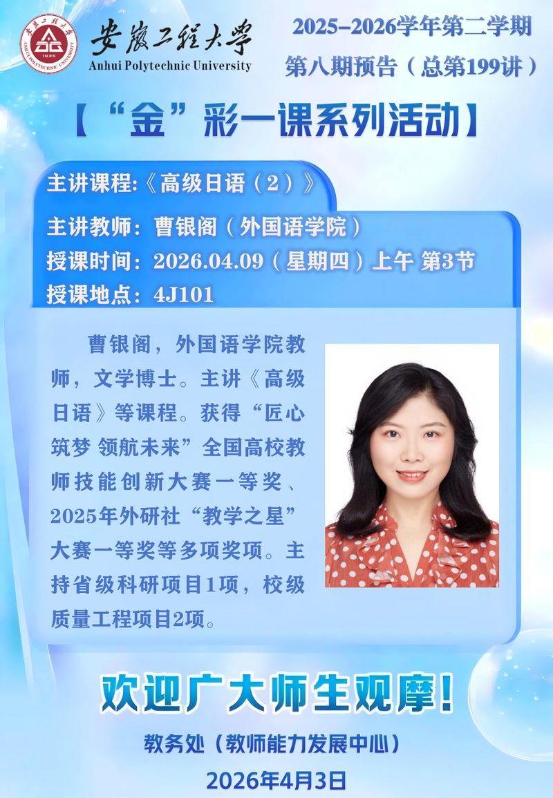 2025-2026学年第二学期【“金”彩一课系列活动】第八期预告(总第199讲)