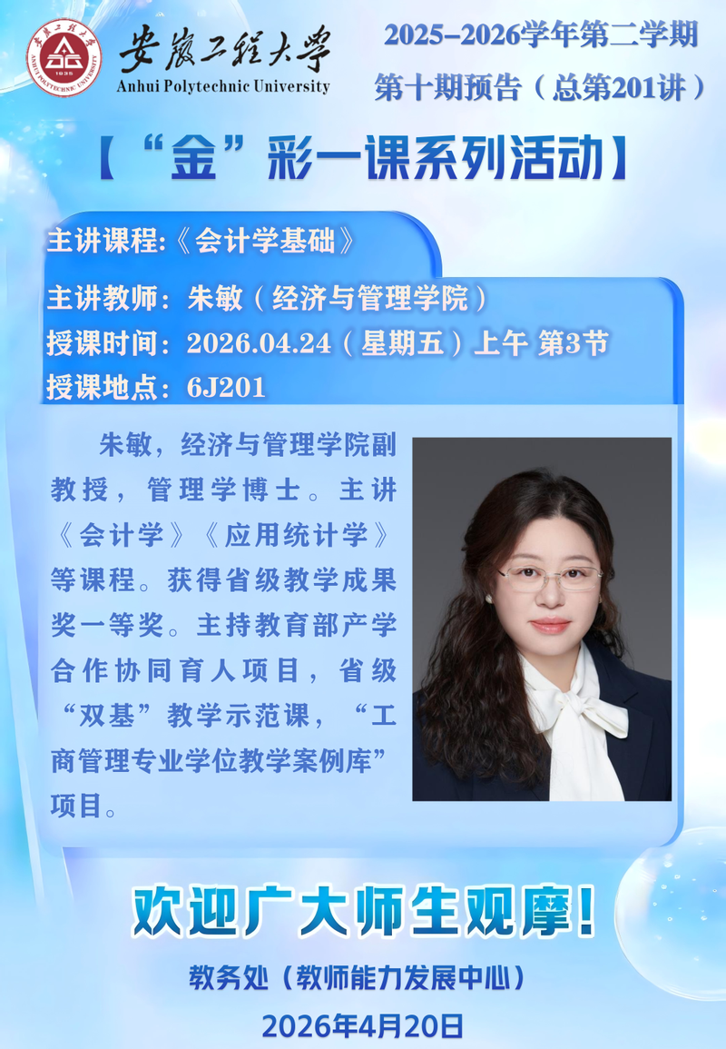 2025-2026学年第二学期【“金”彩一课系列活动】第十期预告(总第201讲)