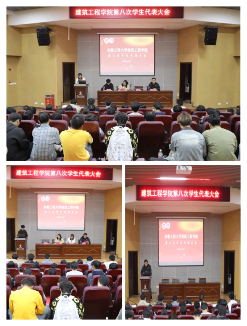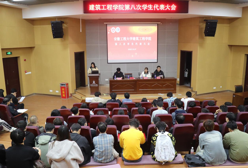 秋阳杲杲,金风送爽。10月27日晚,建筑工程学院第八次学生代表大会在C座三楼报告厅顺利召开。院党委副书记吴敏,院团委负责人、校学生会主席团代表、院第七届学生会主席团、学院83名学生代表参加会议。