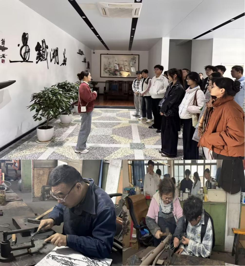 在铁画制作工坊,学员们近距离观摩了非遗传承人锻制铁画的全过程。锤起锤落之间,坚硬的铁块在匠人手中逐渐化为灵动线条,实现“化刚为柔”的工艺蜕变。土木251班何嘉隽同学感慨道:“这正如我们建筑工程中对待材料的过程,只有深刻理解其属性,并通过精准施工,才能将图纸构想变为现实中的稳固建筑。”工匠师傅对每一处节点、每一分力量的精准掌控,生动诠释了建筑工程领域所倡导的精益求精、一丝不苟的“工匠精神”。