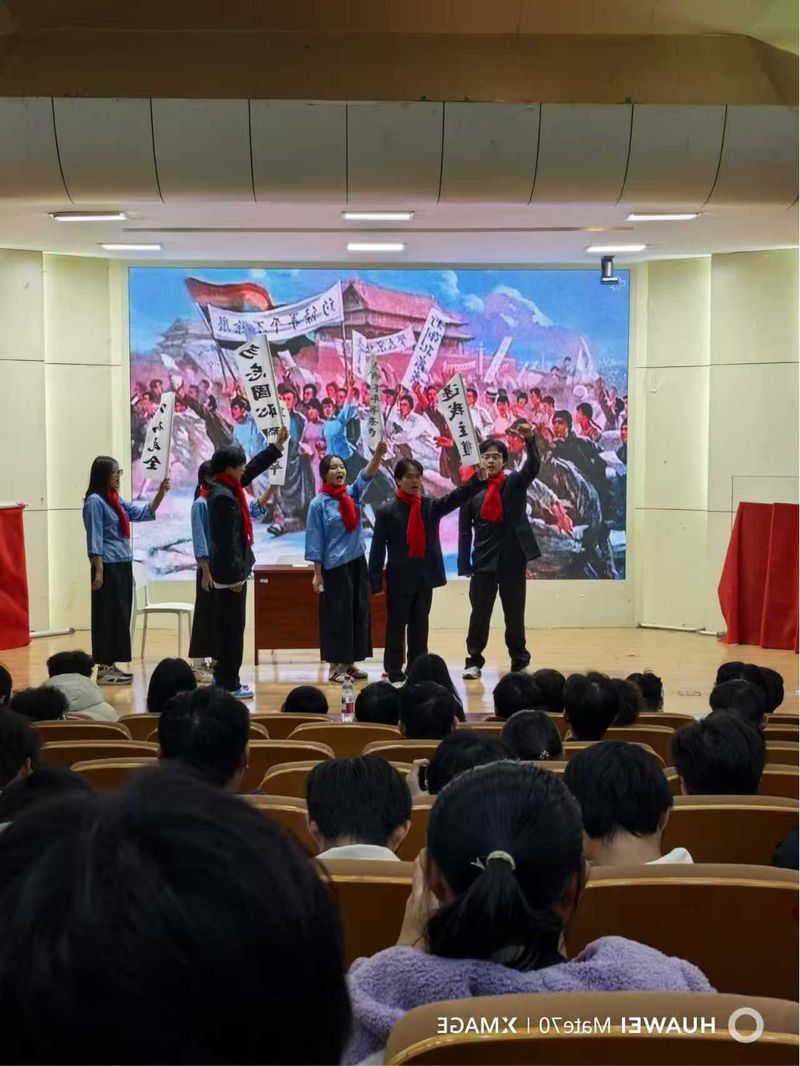 本次主题团课突破传统理论学习模式,以学院学生自编自导自演的原创红色话剧《青春如火,信念如炬》为主线,通过四个历史篇章,生动展现了一代代中国青年在不同历史时期的奋斗故事。从五四运动的“星火燎原”,到西北戈壁的“汗筑山河”,从改革开放的“潮涌逐光”,到新时代的“薪火相传”,话剧以沉浸式艺术形式,让团员青年在时空穿越中感受信仰的力量。