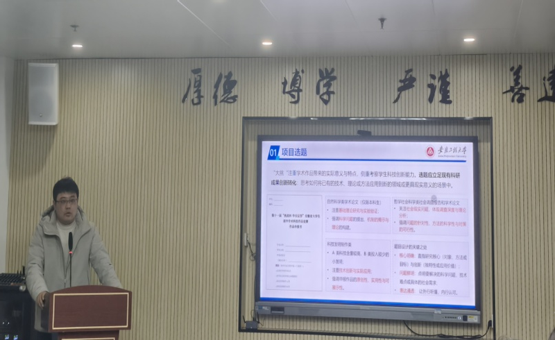 在学科竞赛成果总结环节,学院大学生创新创业中心主任李茜全面汇报了过去一年学院在各类学科竞赛中取得的突破性成果,同时对新一年重点赛事进行了介绍和讲解,明确了工作方向与具体措施。