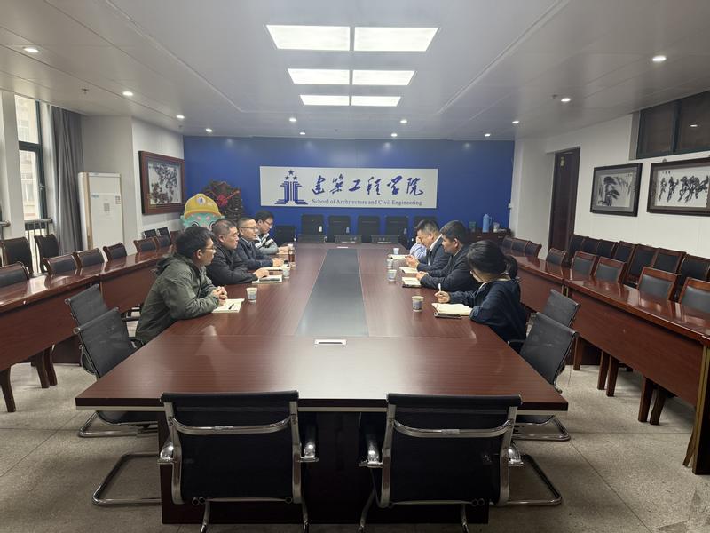 张礼波代表学院对张传亮一行表示热烈欢迎,简要介绍了学院办学历史、学科专业建设、人才培养体系及服务地方经济社会发展情况。他指出,学院始终坚持以党建为引领、以产业需求为导向,深耕土建类人才培养与科技创新,与安徽建工皖江新材料科技有限公司发展方向高度契合,合作空间广阔。曾磊围绕学院师资队伍、科研平台、重点研究方向及“十五五”期间产学研合作规划作详细介绍,重点阐述了在新型建材、智能建造、固废资源化利用等领域的科研基础与合作意向,提出校企协同开展技术攻关、成果转化、平台共建的具体思路。黄博、庄维坦分别围绕专业建设、固废材料在建材领域的资源化应用及高性能建筑材料研发等方向作交流发言。