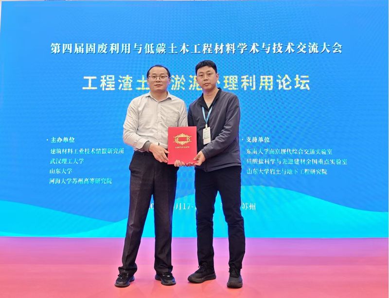 2026年4月17日至19日,由建筑材料工业技术情报研究所、武汉理工大学、山东大学、河海大学共同主办的“第四届固废利用与低碳土木工程材料大会”在江苏省苏州市召开。600余名来自全国各地高校、科研院所、产业界的专家与行业代表参加会议,建筑工程学院教师韩有民、江莉参加了此次会议。