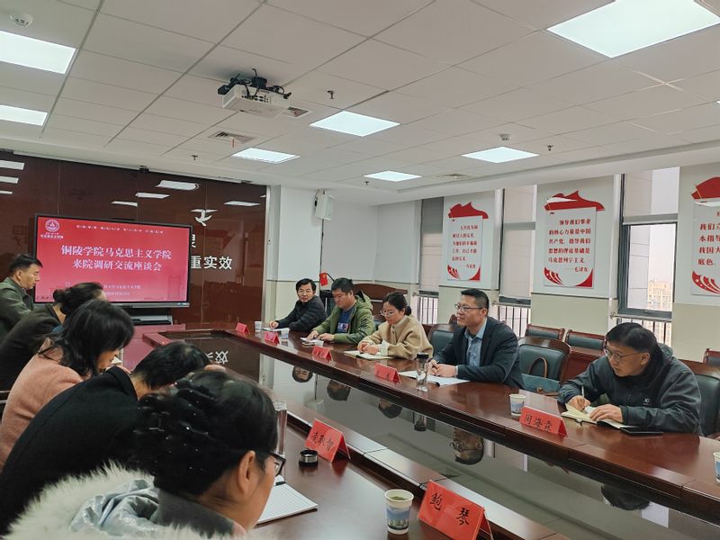 12月11日上午,铜陵学院马克思主义学院院长崔磊带领团队来到我院进行调研交流。学院领导班子成员、教研部主任以及本科教学办公室主任参加了此次调研座谈。会议由学院院长吴月红主持。