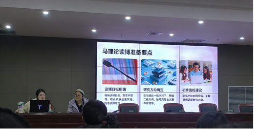 分享会上,袁华博士结合自身的考博经验,从前期准备、院校与导师选择、备考节奏规划三个核心维度展开讲解。同时强调面试时的要求和注意事项,为有考博意向的学生们提供了清晰的行动框架。王倩博士聚焦论文写作的痛点与难点,围绕“选题立意、框架搭建、文献引用”三大关键环节进行细致拆解,并结合具体案例给出针对性建议。