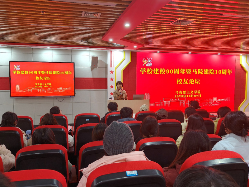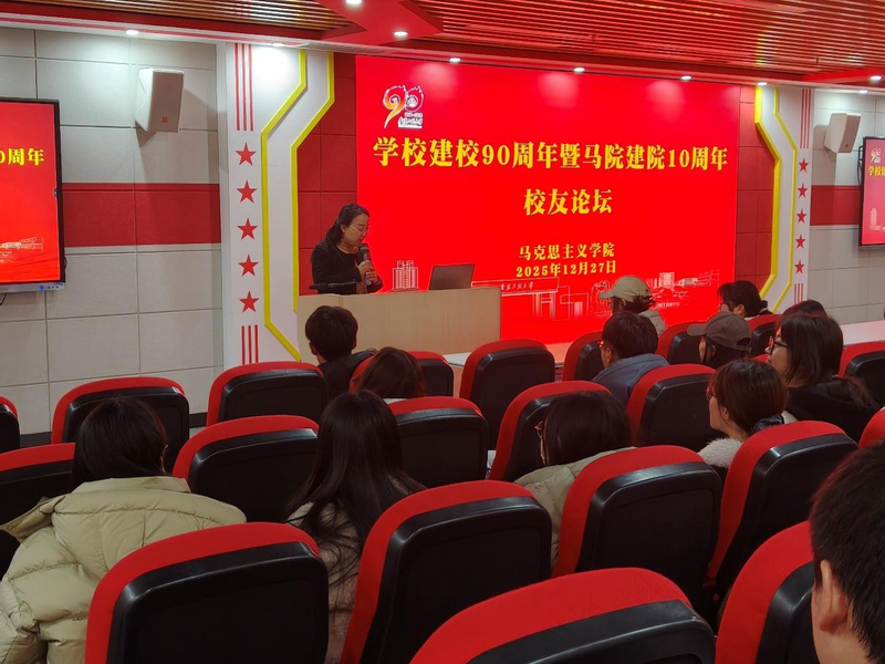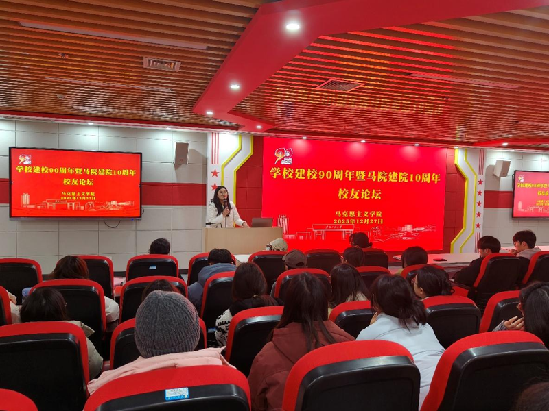 12月27日下午,学校建校90周年暨马克思主义学院建院10周年校友论坛在图书综合楼1410顺利举办。本次论坛以“马克思主义理论专业职业规划和专业发展”为主题,特邀杰出校友代表路明和廖玉林分享经验。学院党总支副书记裴利萍主持论坛,全体在校研究生参加。
