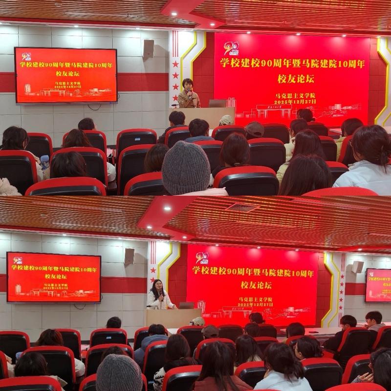 2025年12月27日,马克思主义学院隆重举行“情系马院·共话发展”校友返校活动,以学术的温度与记忆的厚度向学校90周年华诞和学院10周年院庆献礼。返校校友、历任及现任领导班子、师生代表共聚一堂,回溯青葱岁月,擘画未来新篇。
