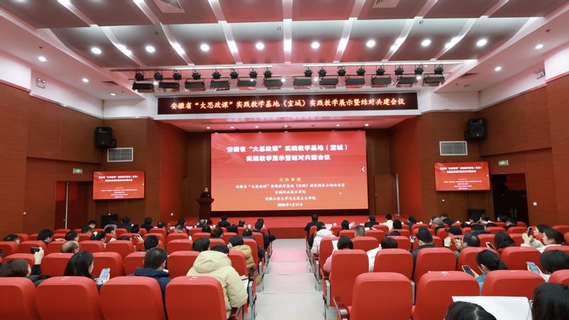 1月11日,安徽省“大思政课”实践教学基地(宣城)实践教学展示暨结对共建会议在宣城召开。安徽省委教育工委思政处处长、一级调研员王后林,宣城职业技术学院党委副书记、院长庞波,安徽工程大学党委副书记郑健,宣城市教体局党委委员、副局长李旻出席会议。安徽省高职高专院校重点马院负责人、基地第一批20个教学点负责人、20个实践教学课程设计项目负责人、宣城职业技术学院教师代表、安徽工程大学马克思主义学院领导班子及师生代表齐聚一堂,共话思政育人新路径。