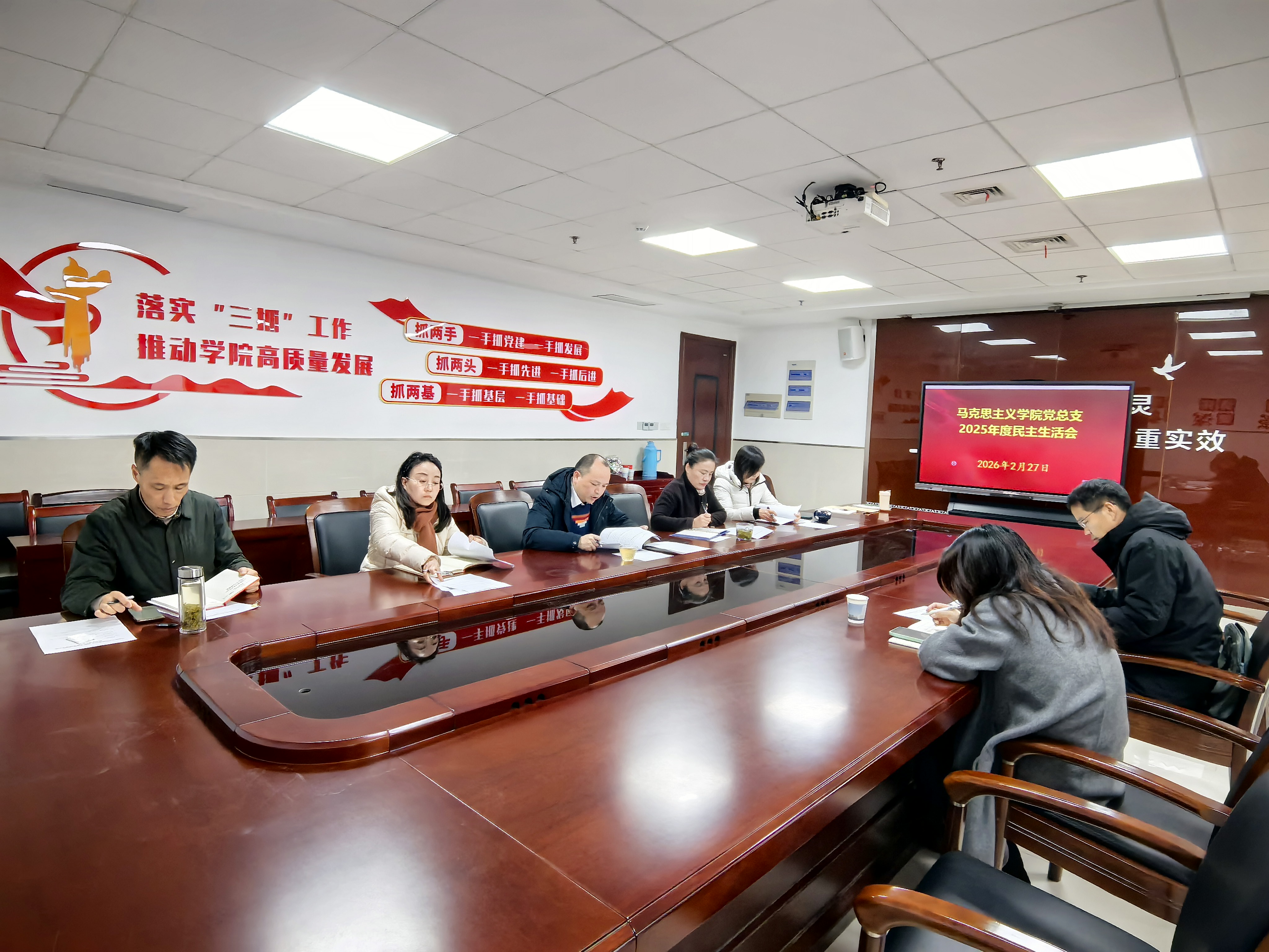 2月27日,马克思主义学院在1512会议室召开2025年度党员领导干部民主生活会。校督导组成员、学校办公室(党委办公室、校长办公室)副主任宋建军到会督导,学院领导班子成员、党总支委员参加会议,会议由学院党总支书记刘伟主持。