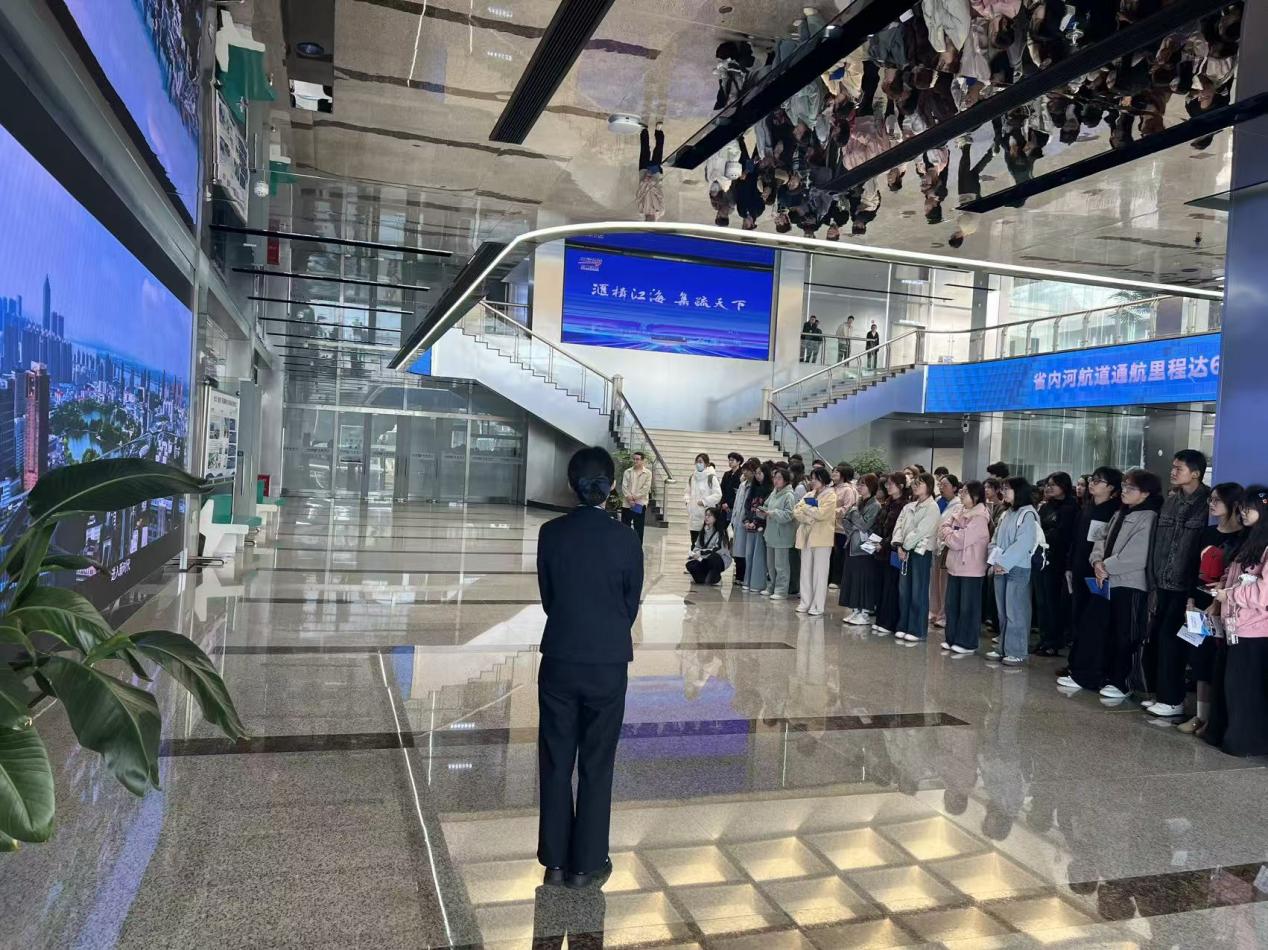 本次实习地点包括长江(芜湖)航运政务服务大厅、江北“两为”政务服务大厅、芜湖市大数据建设投资运营有限公司和芜湖市大砻坊科技产业园。师生们参观了长江流域首个“全航运要素、全生命周期”一站式智慧化政务服务大厅,了解了政务服务大厅智能化数字化建设成果,观摩了“东数西算”芜湖市集群展示中心和长三角枢纽芜湖集群算力公共服务平台,加深了对数字经济的理解。在大砻坊,师生参观了园区,园区负责人为学生做了职业生涯规划指导。