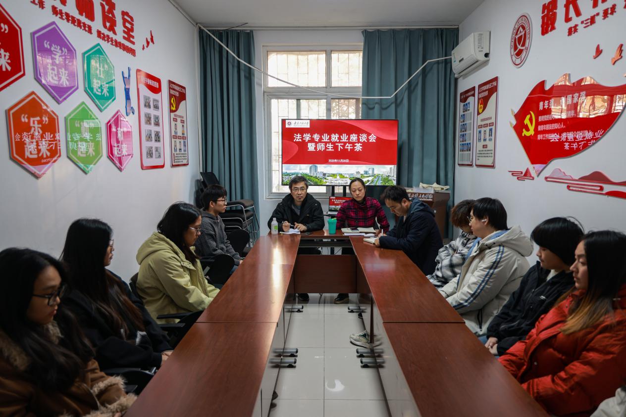 会上,学生代表依次汇报了个人在学业、就业等方面的准备情况。与会师生就法律职业资格考试、人才培养方案、课程设置、后勤保障等方面进行了交流。