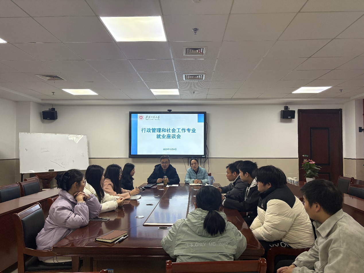 为精准对接毕业生就业需求,助力毕业生高质量就业,12月4日,人文学院召开2026届行政管理和社会工作专业毕业生就业座谈会。学院党委书记刘一、副书记余本祺,毕业班辅导员、教师代表及毕业生代表参会。