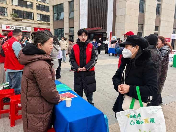 活动现场,志愿者们分工明确、配合默契,搬运摆放活动物料、引导居民有序参与……全力协助社区工作人员开展普法宣传工作,用实际行动展现出青年大学生的责任与担当。在社区广场、商铺门店,