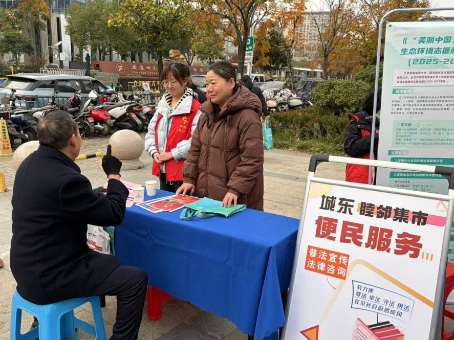 志愿者们手持宣传资料,向过往居民普及《中华人民共和国宪法》《中华人民共和国民法典》等与生产生活密切相关的法律法规。在社区法律咨询服务点,志愿者们耐心答疑,积极协助社区律师为来访居民提供“一对一”法律咨询服务。