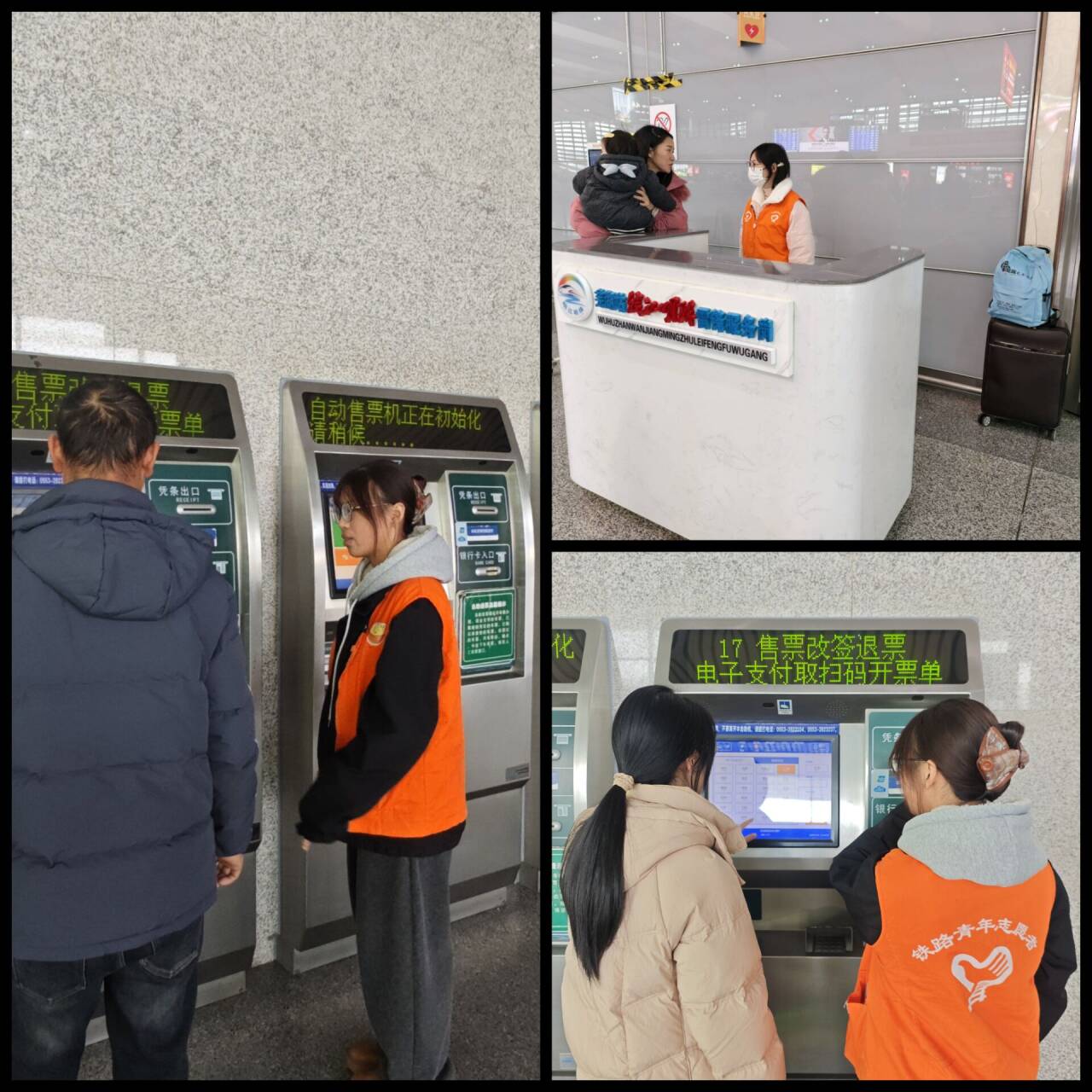活动期间,志愿者分布在火车站的各个关键位置,不仅为旅客提供周到的购票引导、方向指引、车次咨询等服务,还帮助搬运行李,特别关注那些需要额外帮助的老弱旅客。