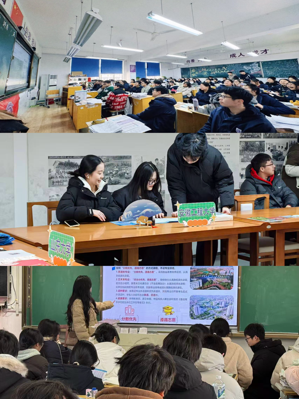 在每一场宣讲中,团队成员都用“过来人”的身份与学弟学妹们相互交流。在合肥皖智高级中学,一场别开生面的“我的大学一天”情景分享,让同学们仿佛提前体验了充实又充满挑战的大学生活。在蚌埠二中,成员们结合自身经历,重点解读了文科专业的就业前景和发展路径,打破了大家对“文科无用”的刻板印象。在铜陵市第三中学,宣讲团围绕高中学习方法与大学适应衔接展开细致分享,为正处在关键备考阶段的同学们送上实用建议,帮助大家明确方向、坚定信心。在旌德中学,宣讲团成员用精心制作的视频,展示了学校、学院丰富多彩的社团活动和学术讲座,让同学们直观感受到了大学的多元与包容。