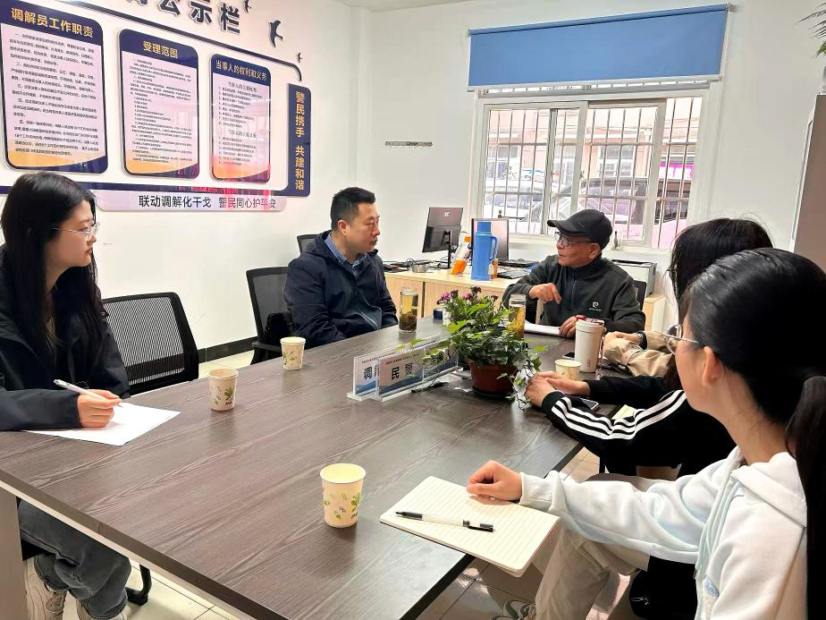 2026年4月2日,社会工作专业研究生课程《社会工作法规与政策》任课教师带领学生“离开”教室,转场汀棠派出所调解室开展实践教学活动,深入调解现场学习调解实务、收集案例材料,体验“枫桥经验”“矛盾不上交、平安不出事、服务不缺位”的核心要义,切实推动课程理论知识与实务应用深度融合。