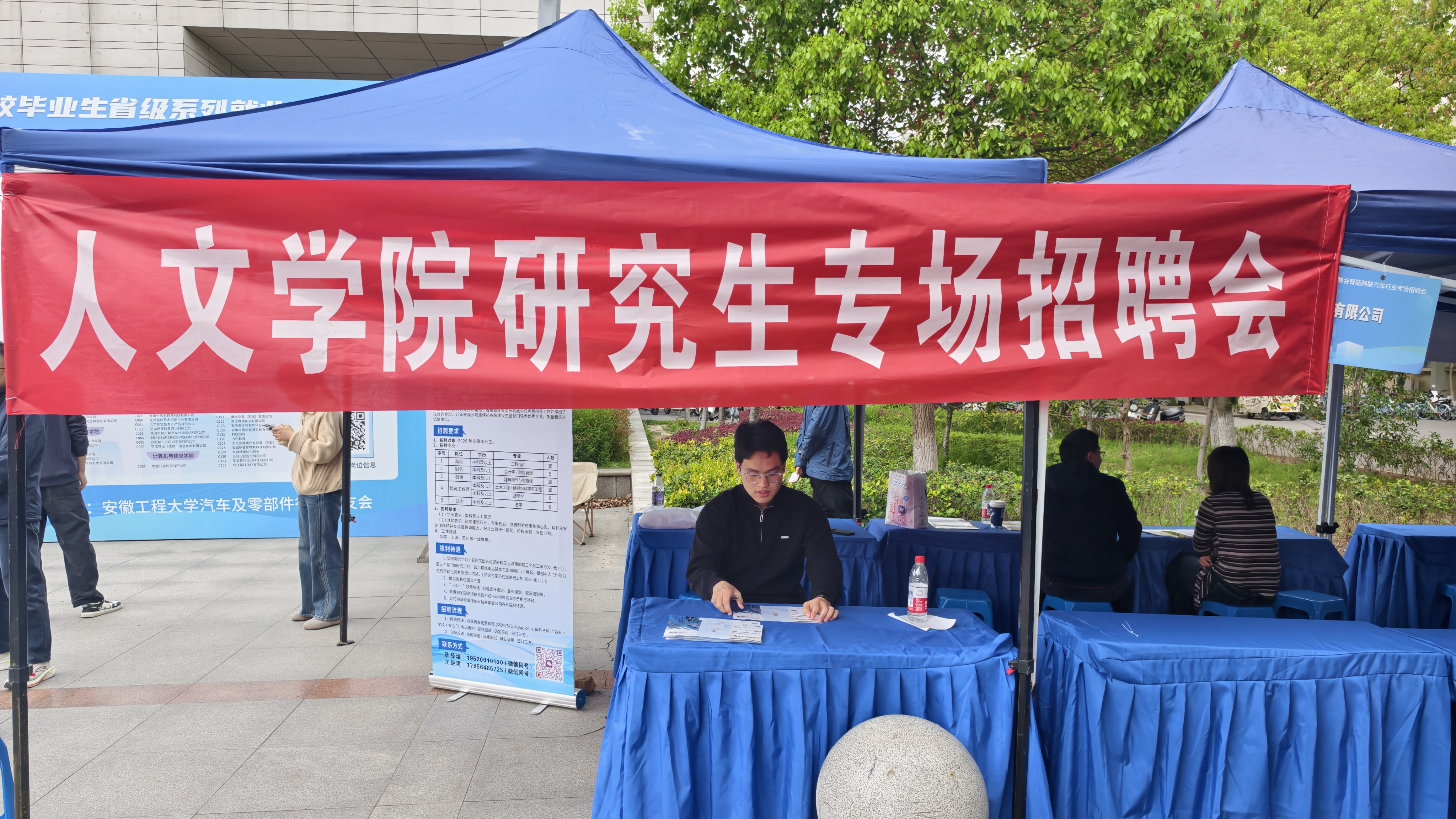 为拓宽就业渠道,助力毕业生实现更高质量就业,4月8日,人文学院2026届毕业生专场招聘会在学校图书馆广场举行。招聘企业代表,人文学院领导、毕业班辅导员以及2026届本科生、研究生参加。